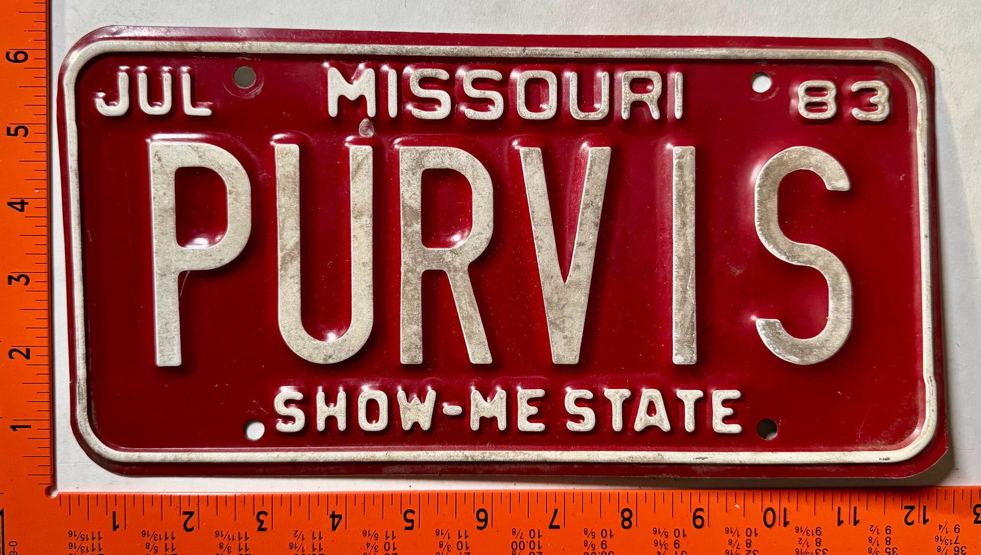 1983 Missouri #PURVIS Passenger Vanity License Plate