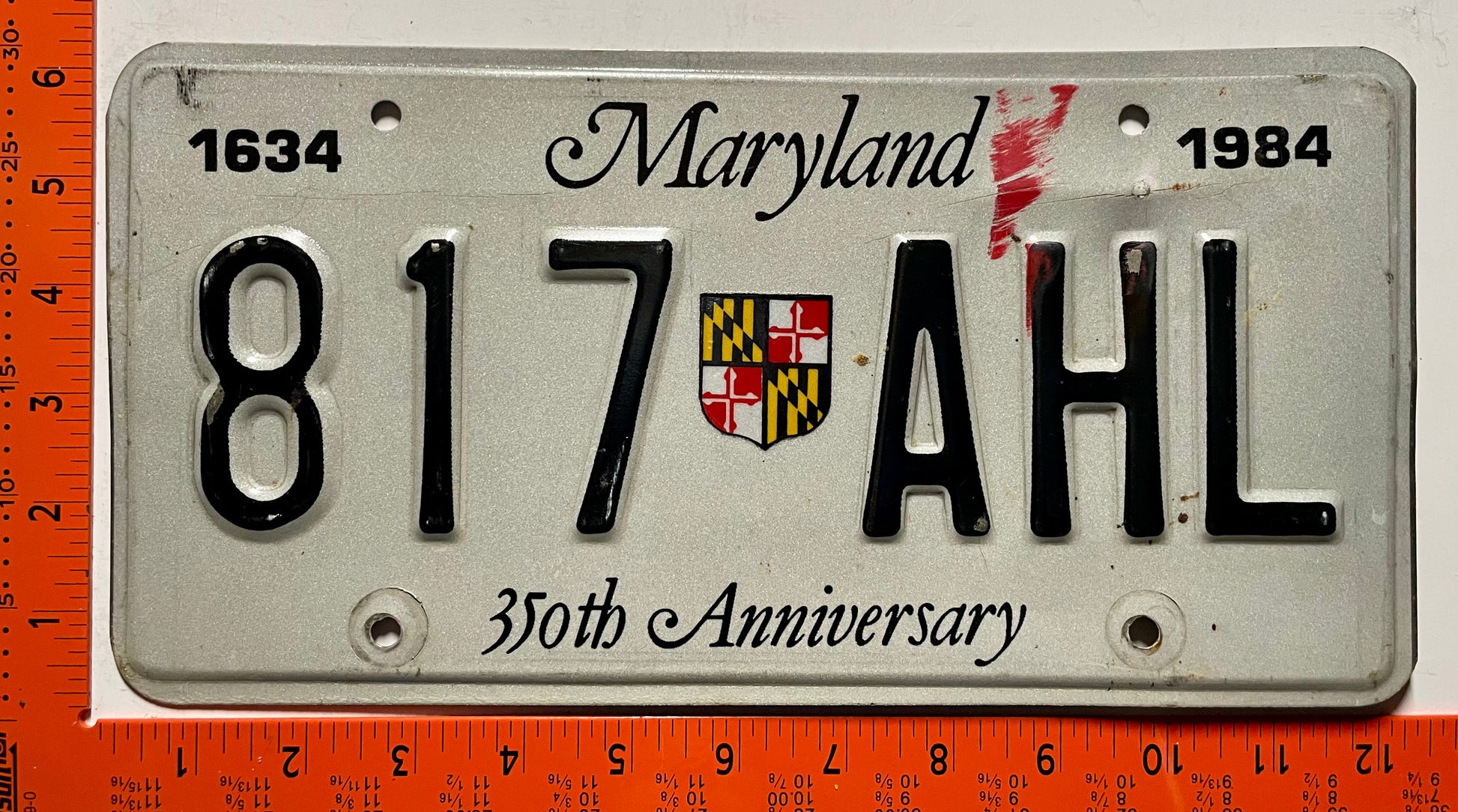 1984 Maryland #817 AHL 350th Anniversary Optional License Plate