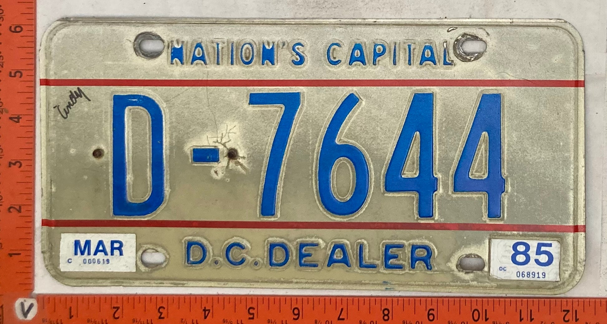 1985 Washington, DC #D-7644 Dealer License Plate