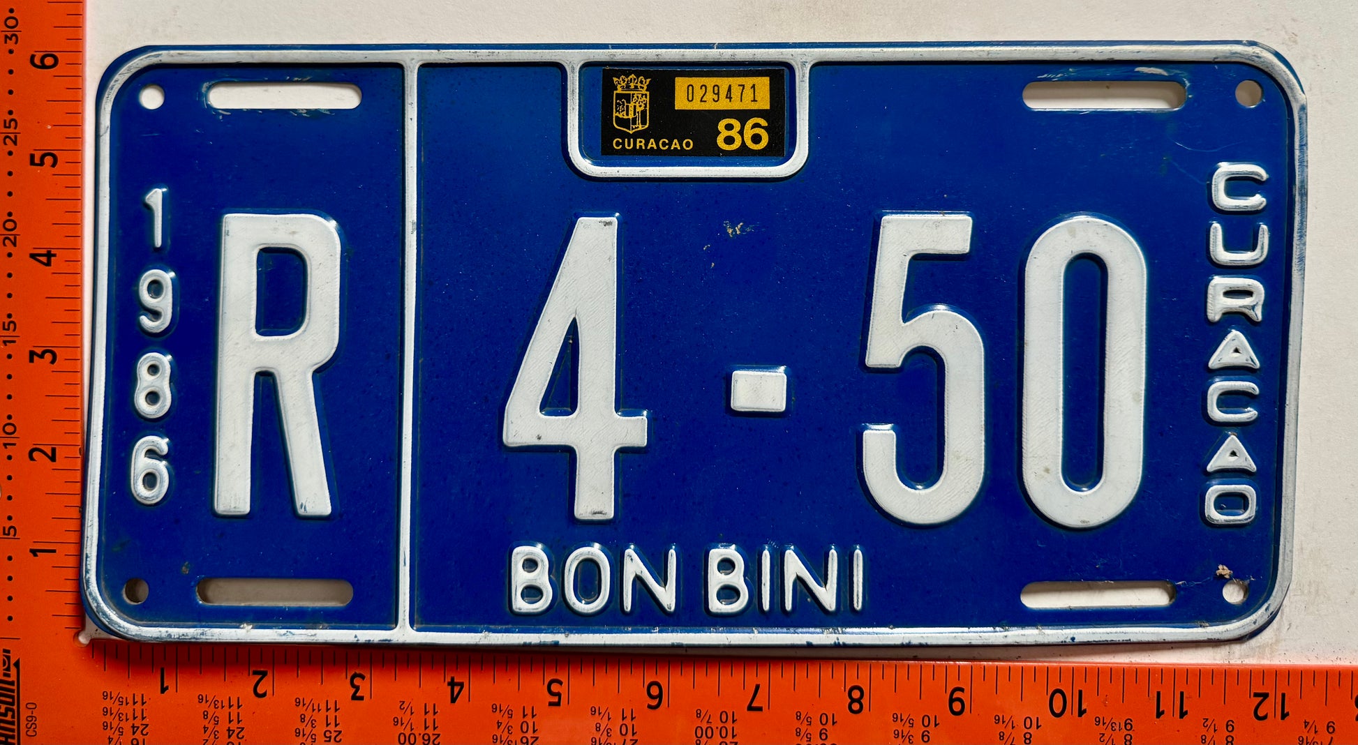 1986 Curacao #R 4-50 Rental License Plate