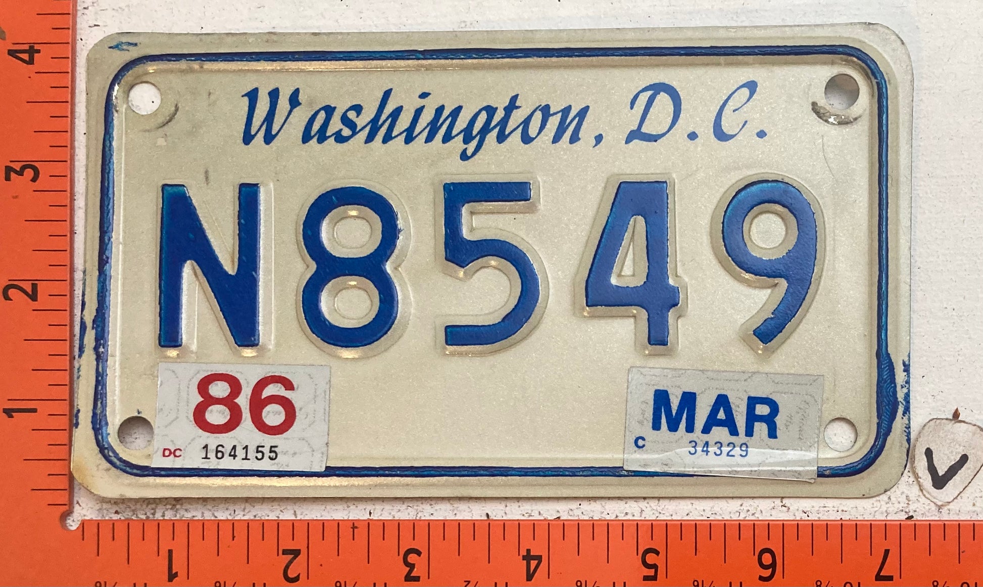 1986 Washington, DC #N8549 Motorcycle License Plate