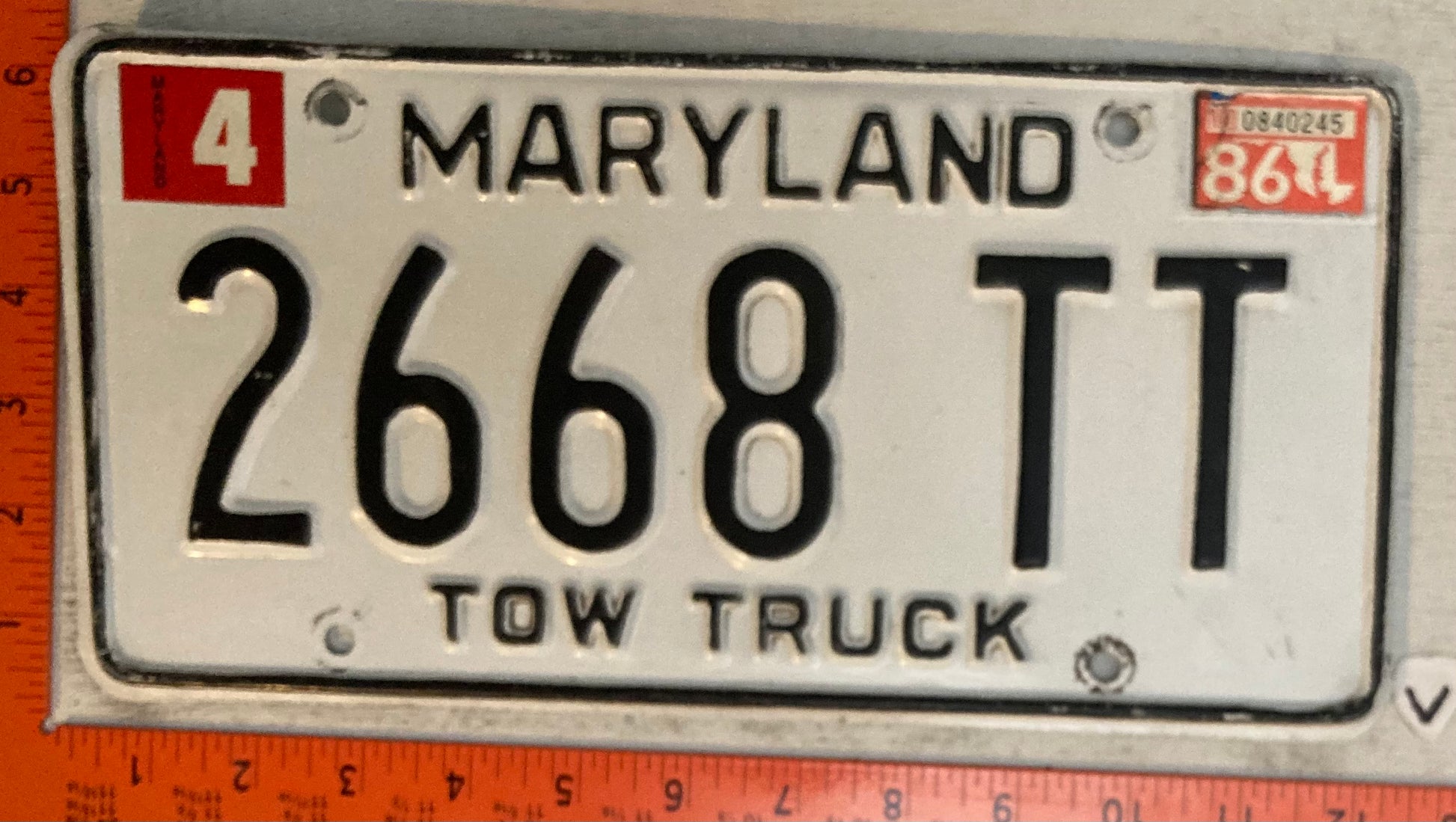 1986 Maryland #2668 TT Tow Truck License Plate