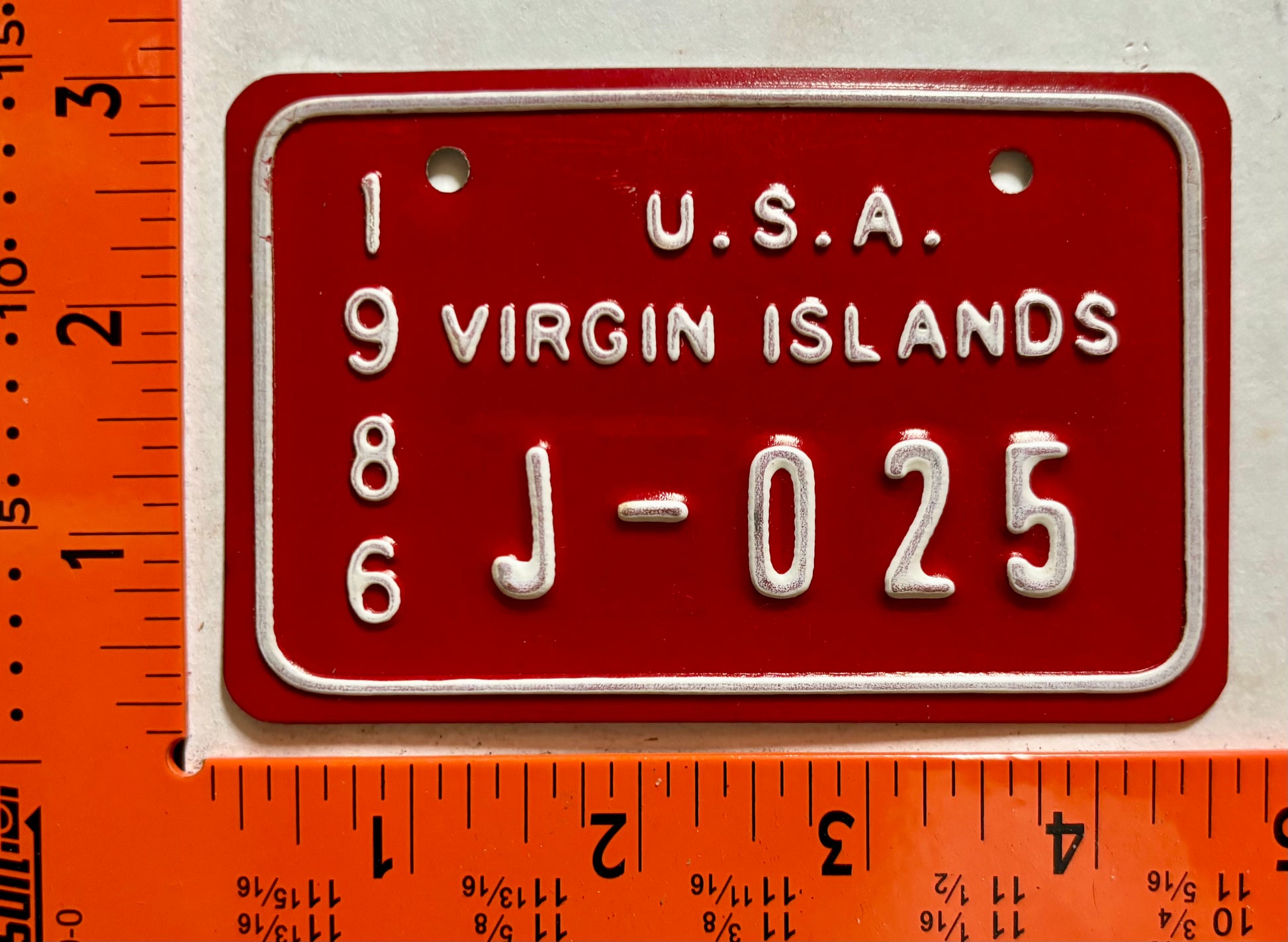 1986 Virgin Islands #J-025 Bicycle License Plate