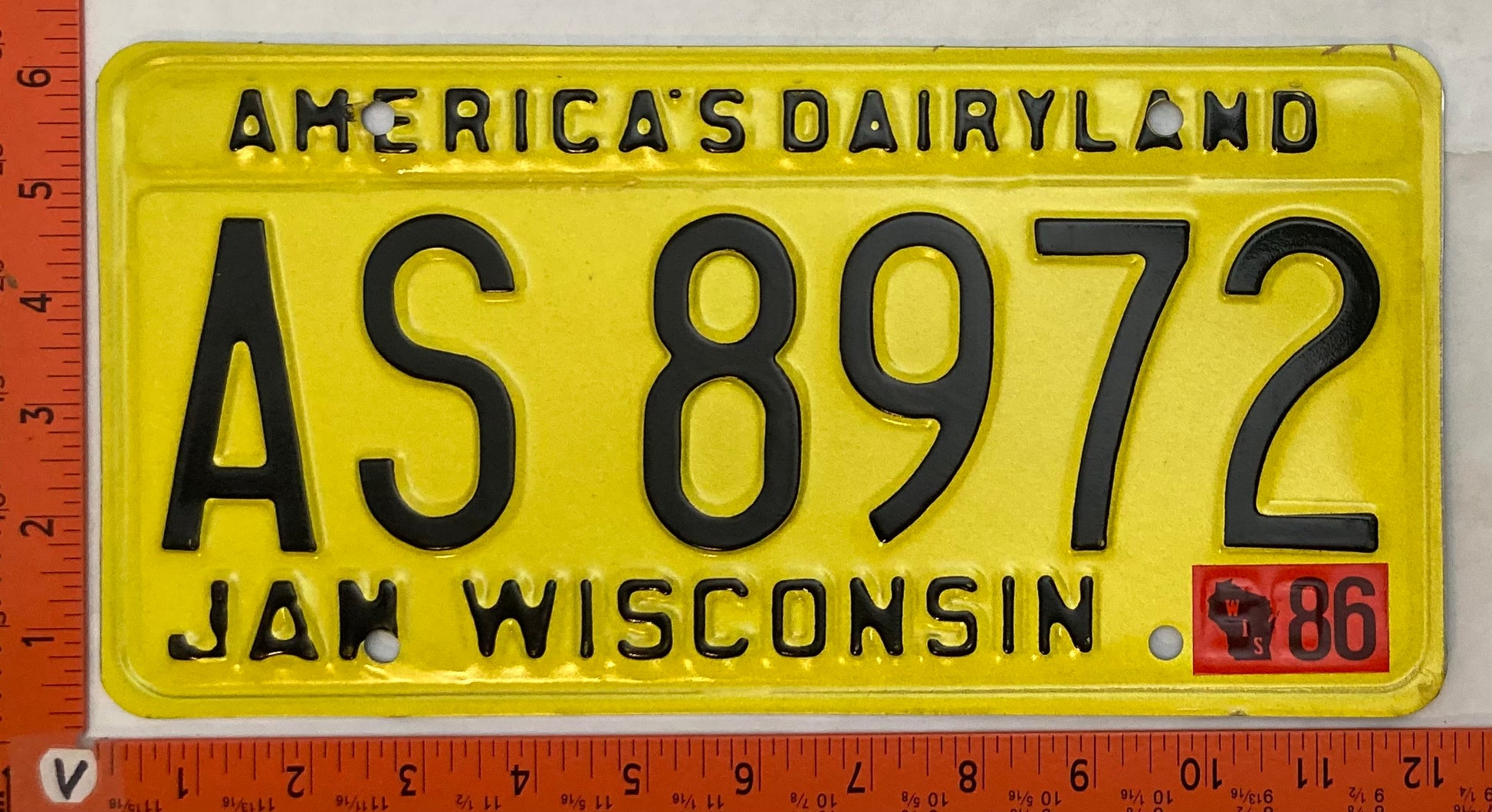 1986 Wisconsin #AS 8972 Passenger License Plate