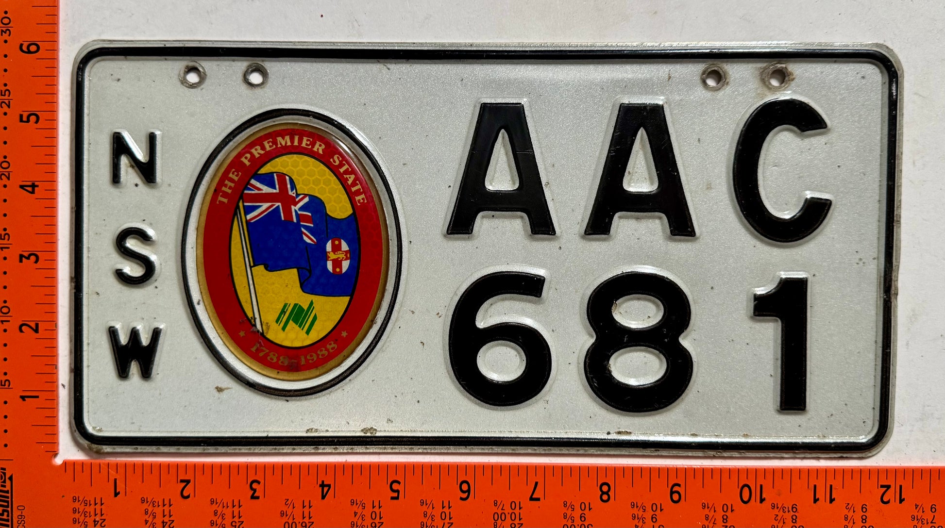 1988 base New South Wales, Australia #AAC/681 Passenger License Plate