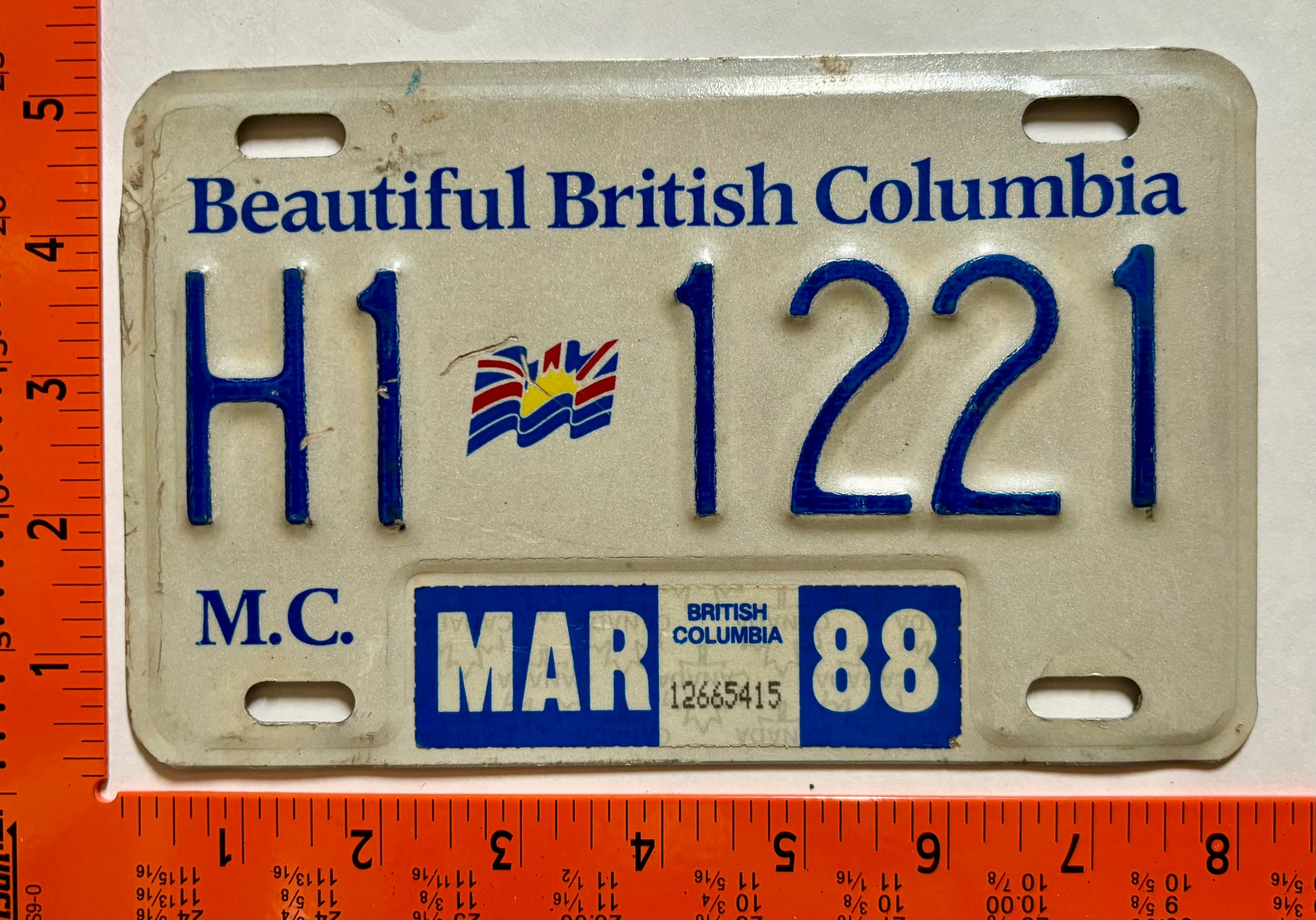 1988 British Columbia #H1 1221 Motorcycle License Plate