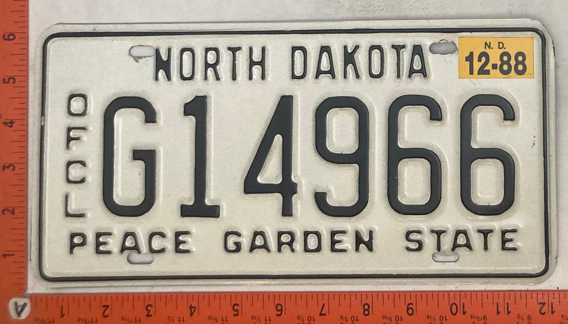 1988 North Dakota #G14966 Official License Plate