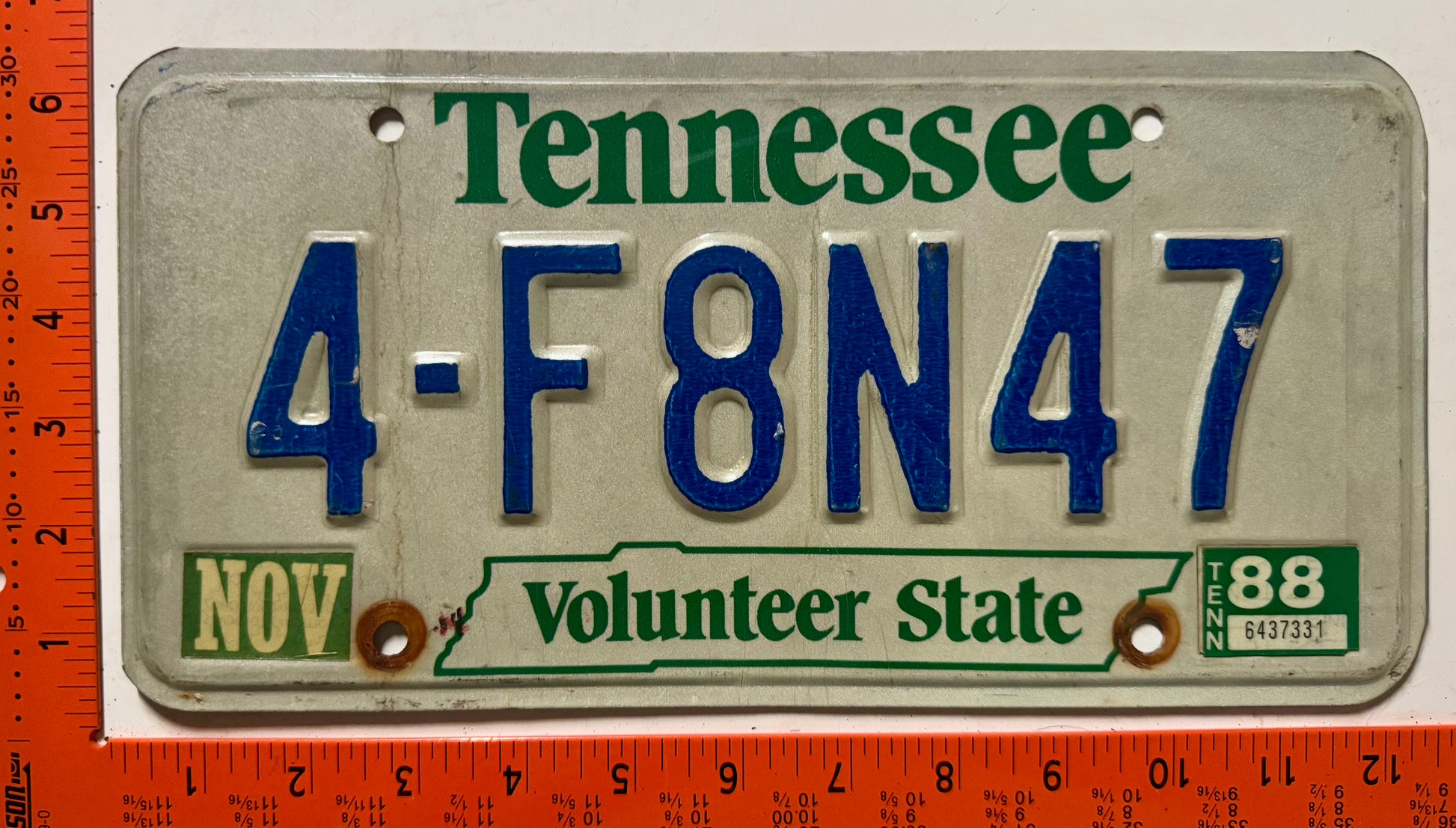 1988 Tennessee #4-F8N47 Passenger License Plate