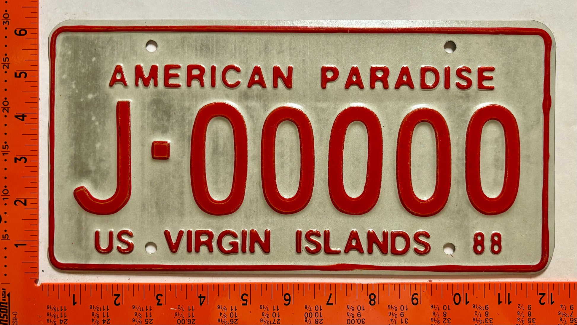 1988 Virgin Islands #J-00000 Passenger Sample License Plate