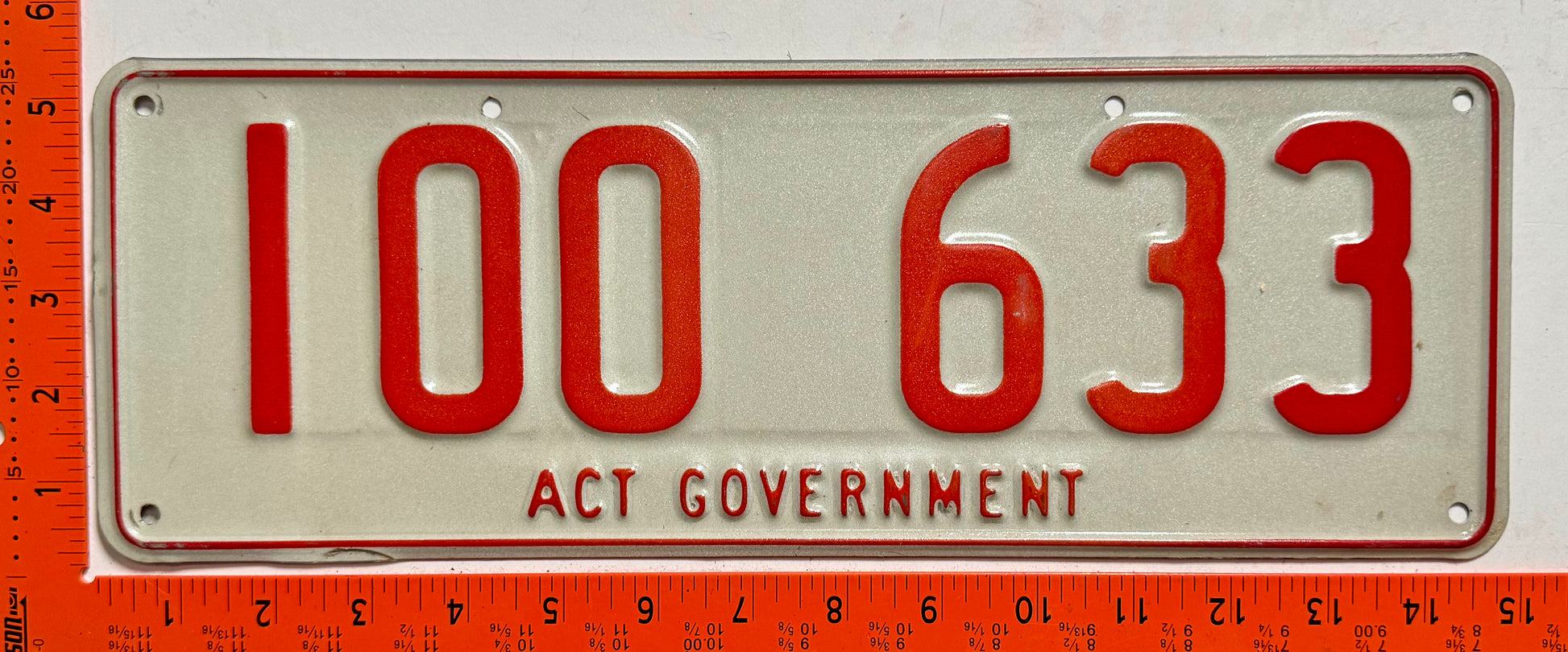 1989 base Australian Capital Territory #100 633 Government License Plate