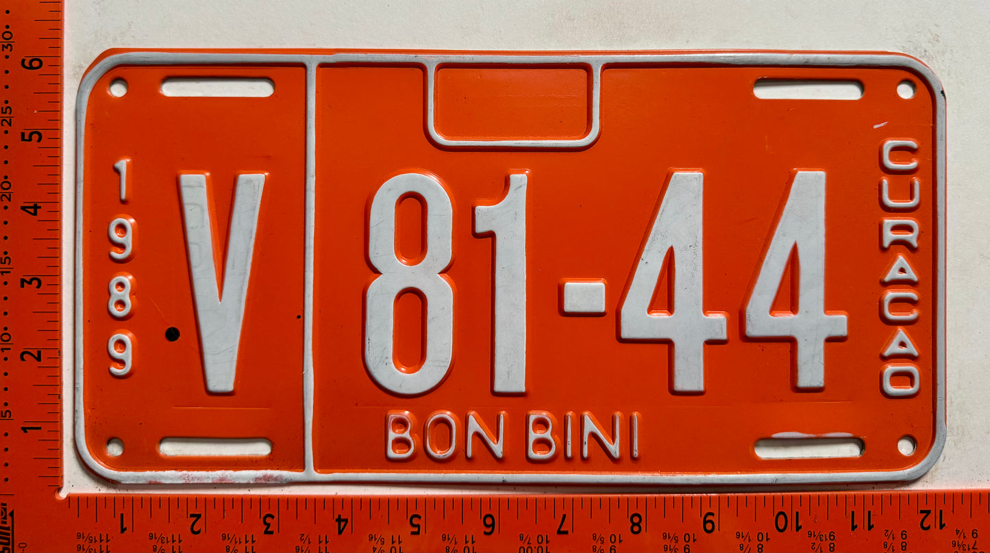 1989 Curacao #V 81-44 Commercial Error or Paint Test License Plate