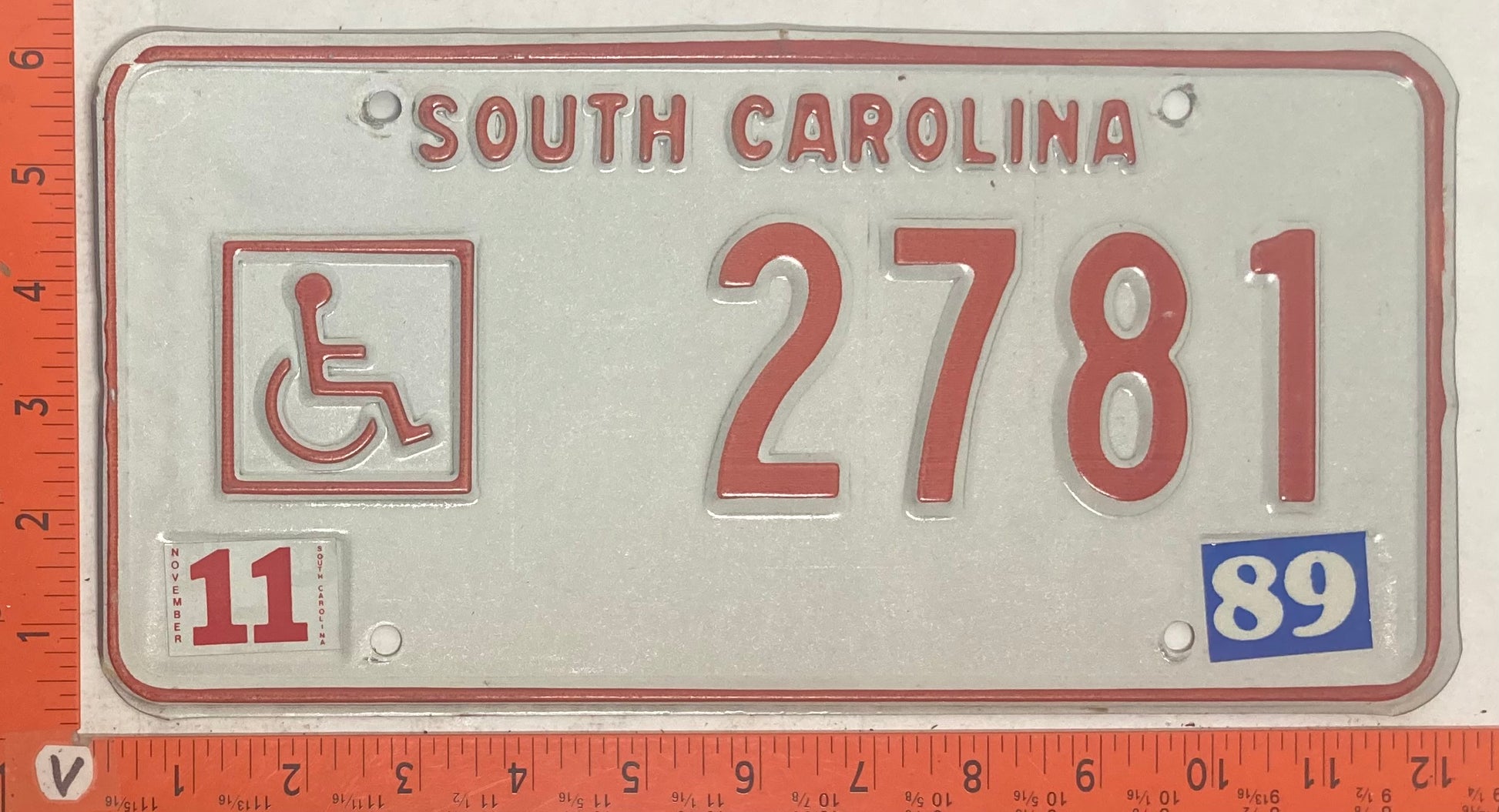 1989 South Carolina #2781 Passenger License Plate (Handicapped)