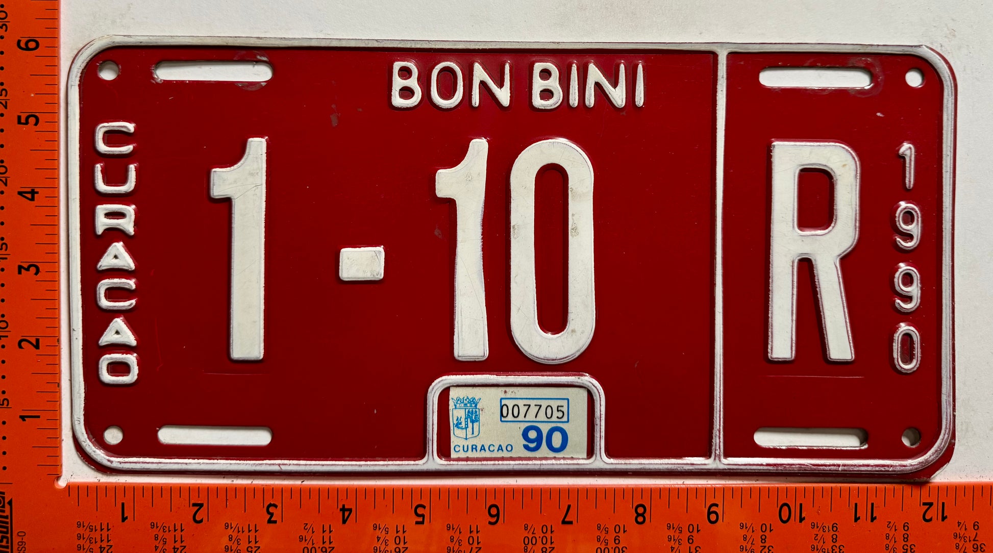 1990 Curacao #1-10 R Rental License Plate