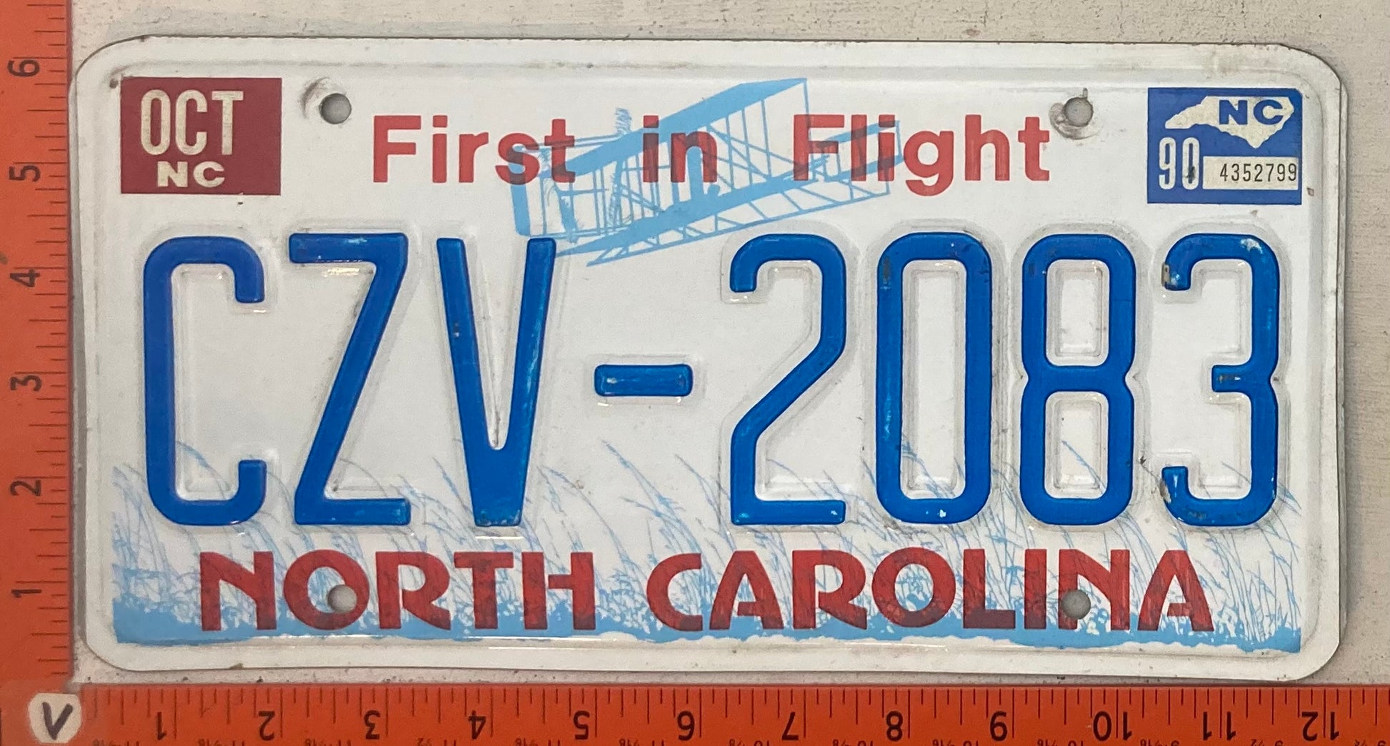 1990 North Carolina #CZU-2083 Passenger License Plate