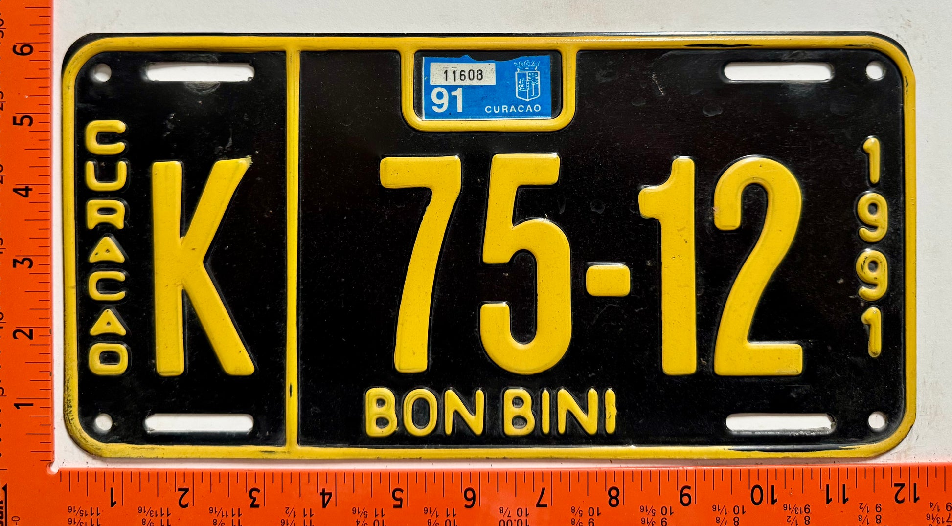 1991 Curacao #K 75-12 Passenger License Plate