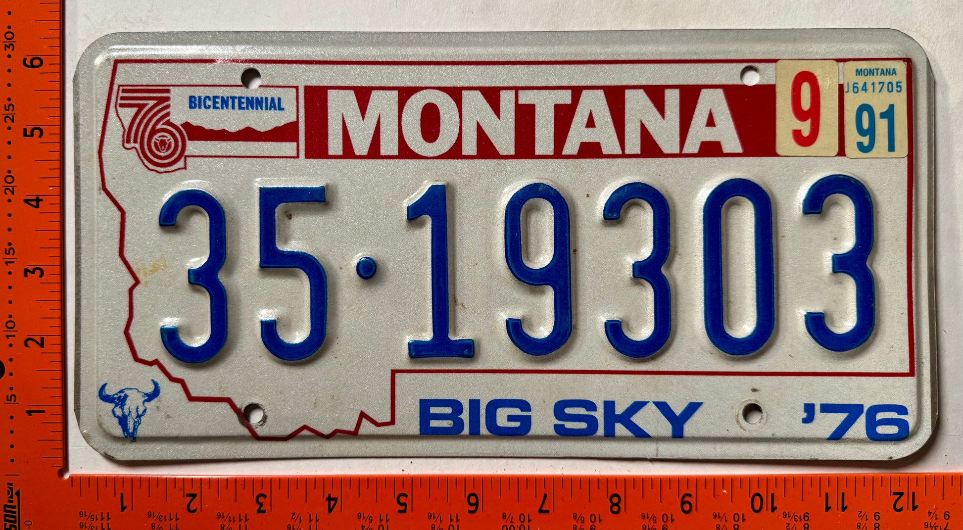 1991 Montana #35-19303 Passenger License Plate
