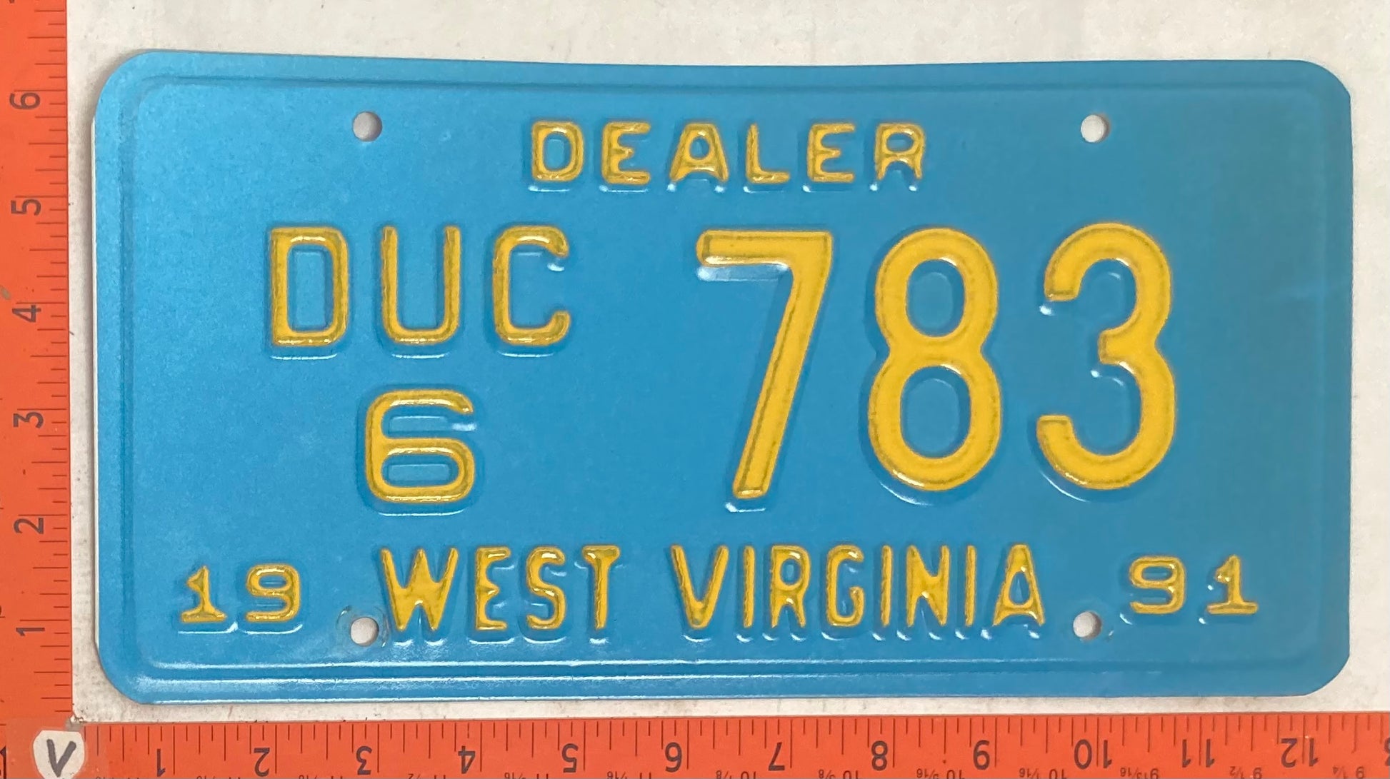 1991 West Virginia #DUC/6 783 Used Car Dealer License Plate