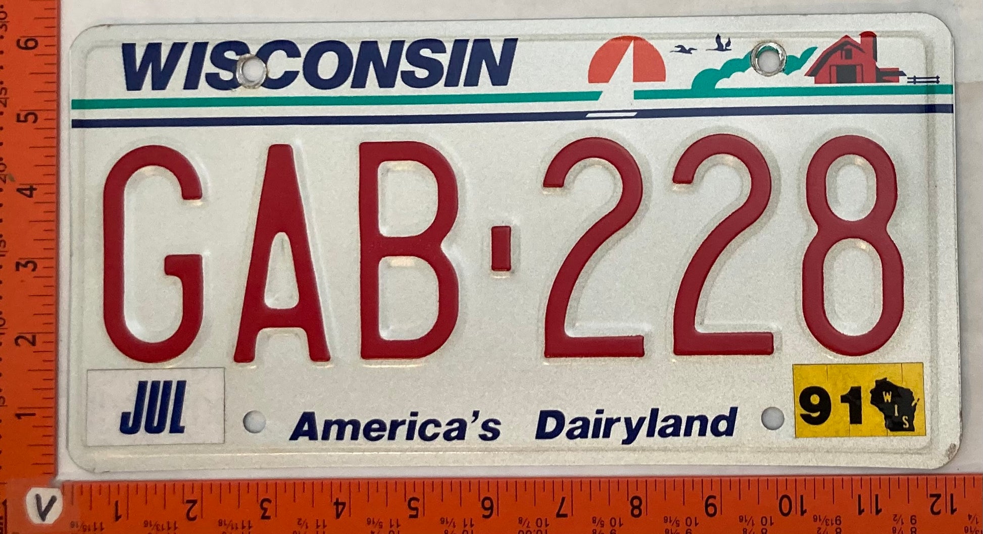 1991 Wisconsin #GAB-228 Passenger License Plate