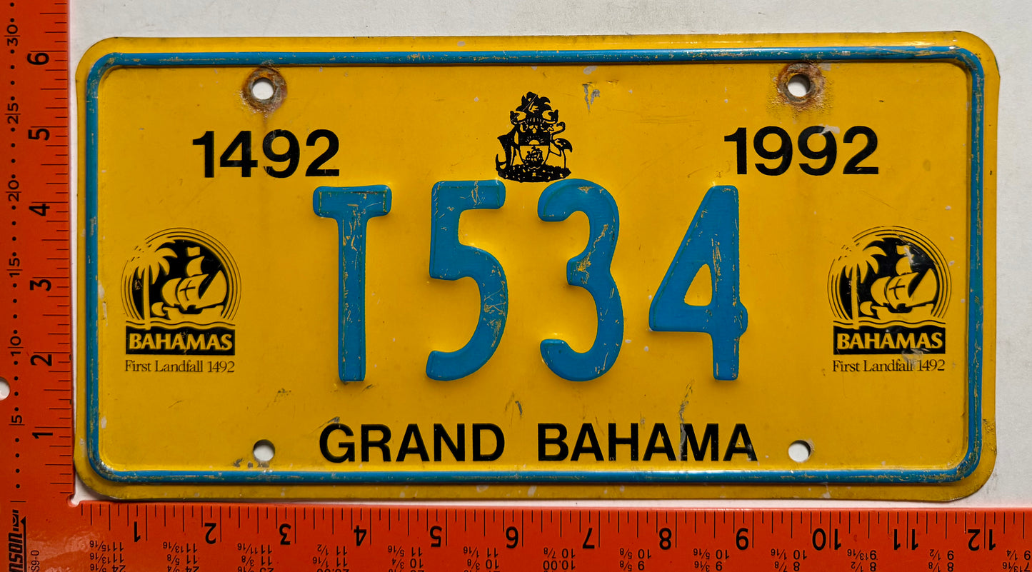 1992 Grand Bahama, Bahamas #T534 Truck License Plate
