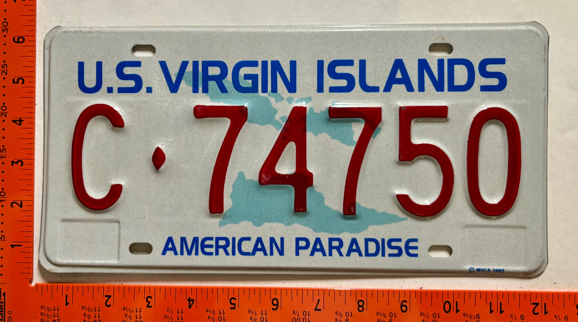 1993 base Virgin Islands #C-74750 Passenger License Plate