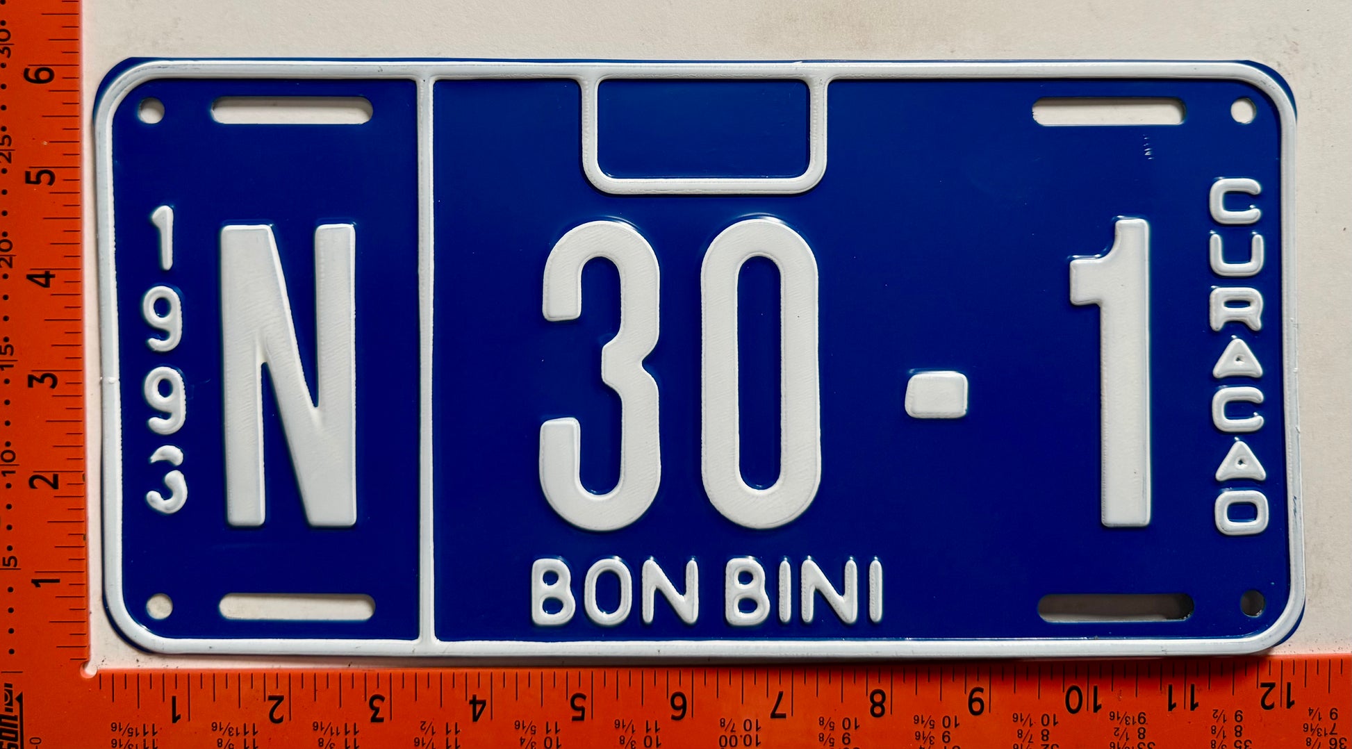 1993 Curacao #N 30-1 Passenger License Plate