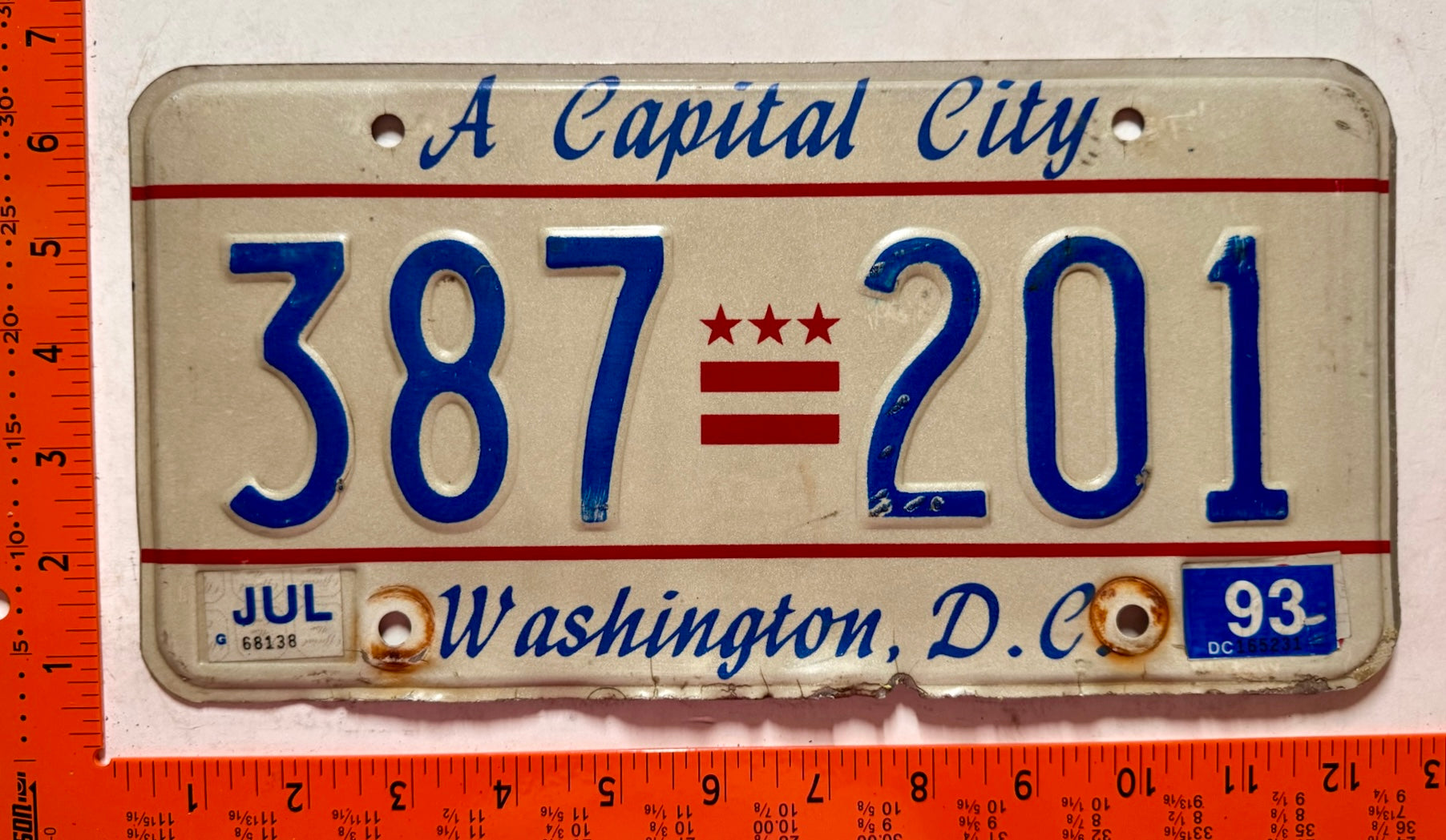 1993 Washington, DC #387 201 Passenger License Plate