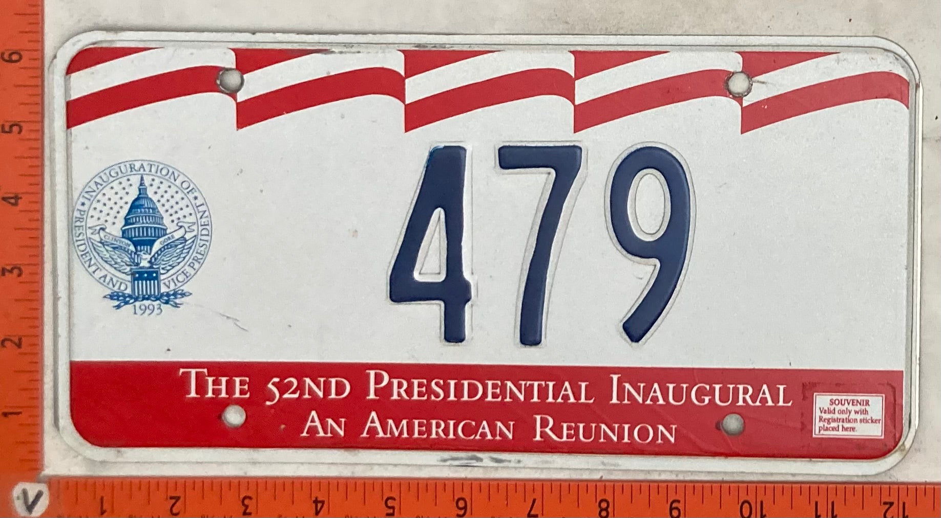 1993 Washington, DC #479 Presidential Inaugural Passenger License Plate