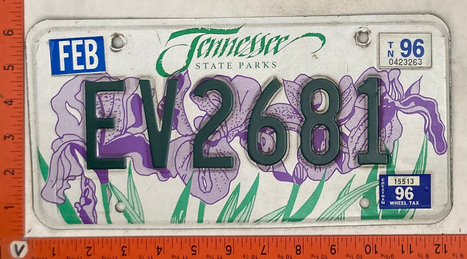 1996 Tennessee #EV2681 Passenger License Plate