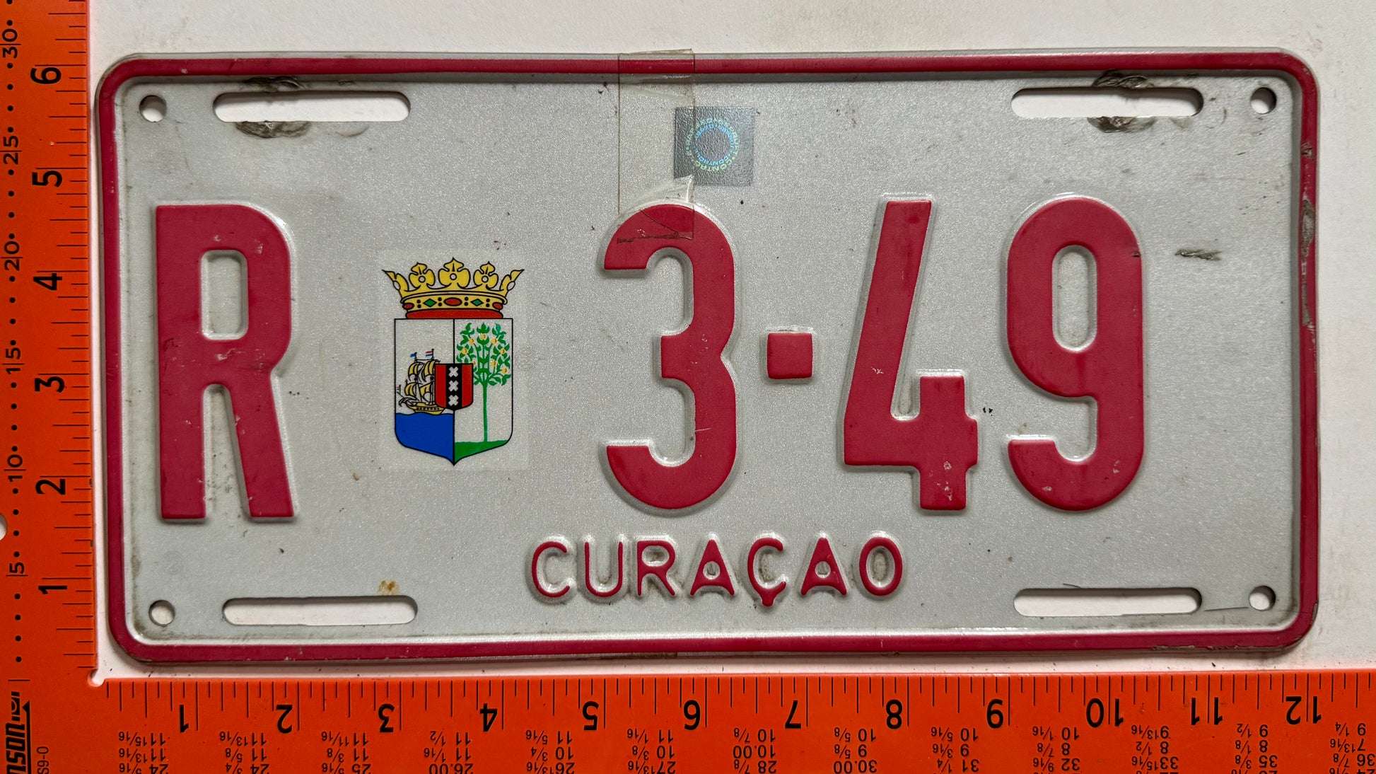 1996 base Curacao #R 3-49 Rental License Plate