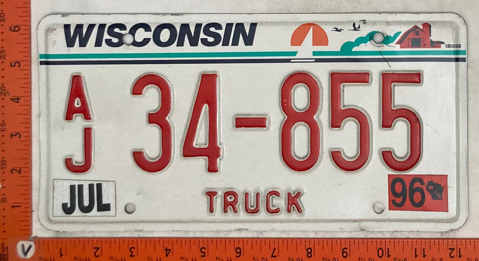 1996 Wisconsin #A/J 34-855 Truck License Plate