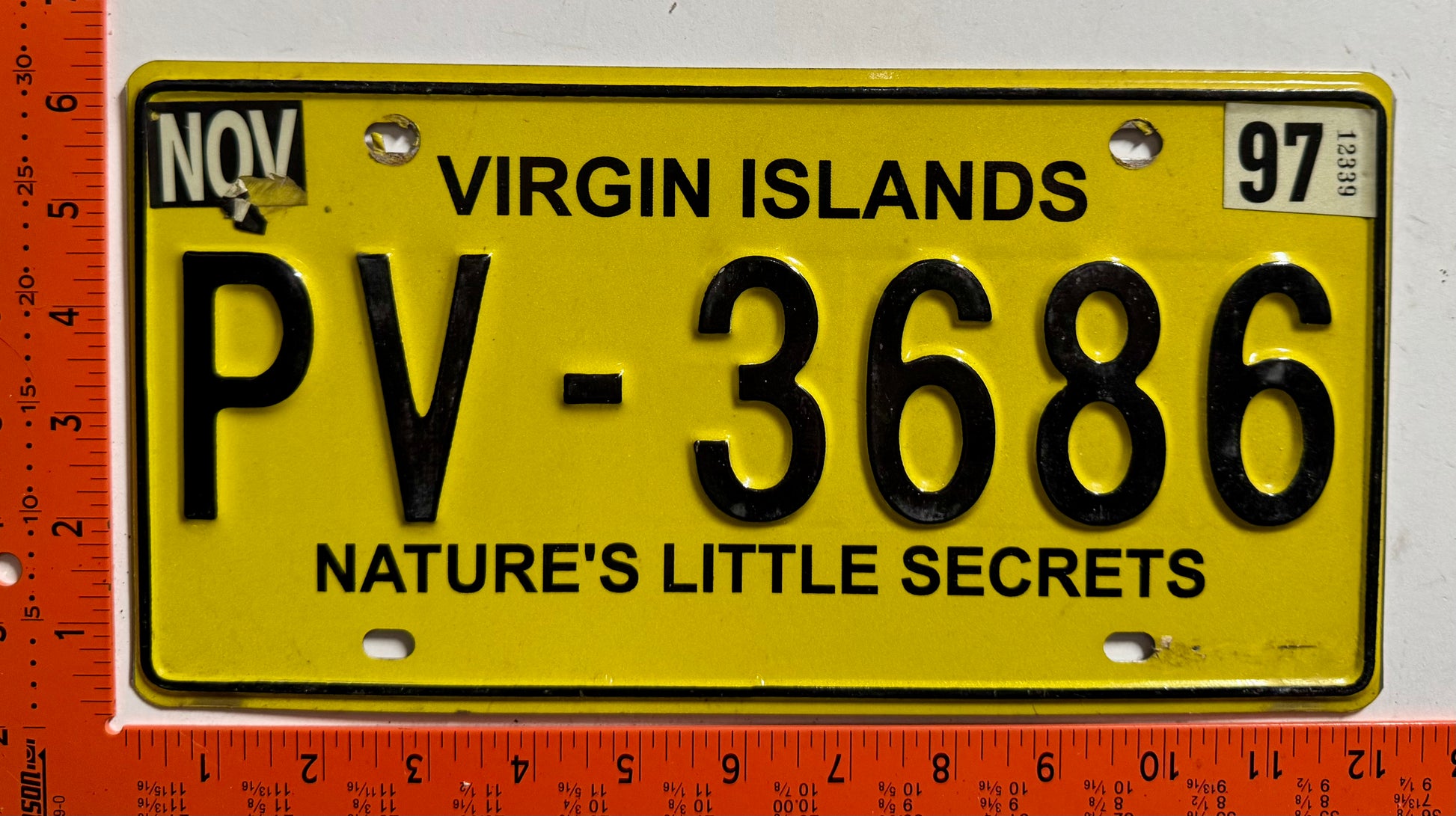 1997 British Virgin Islands #PV-3686 Passenger License Plate