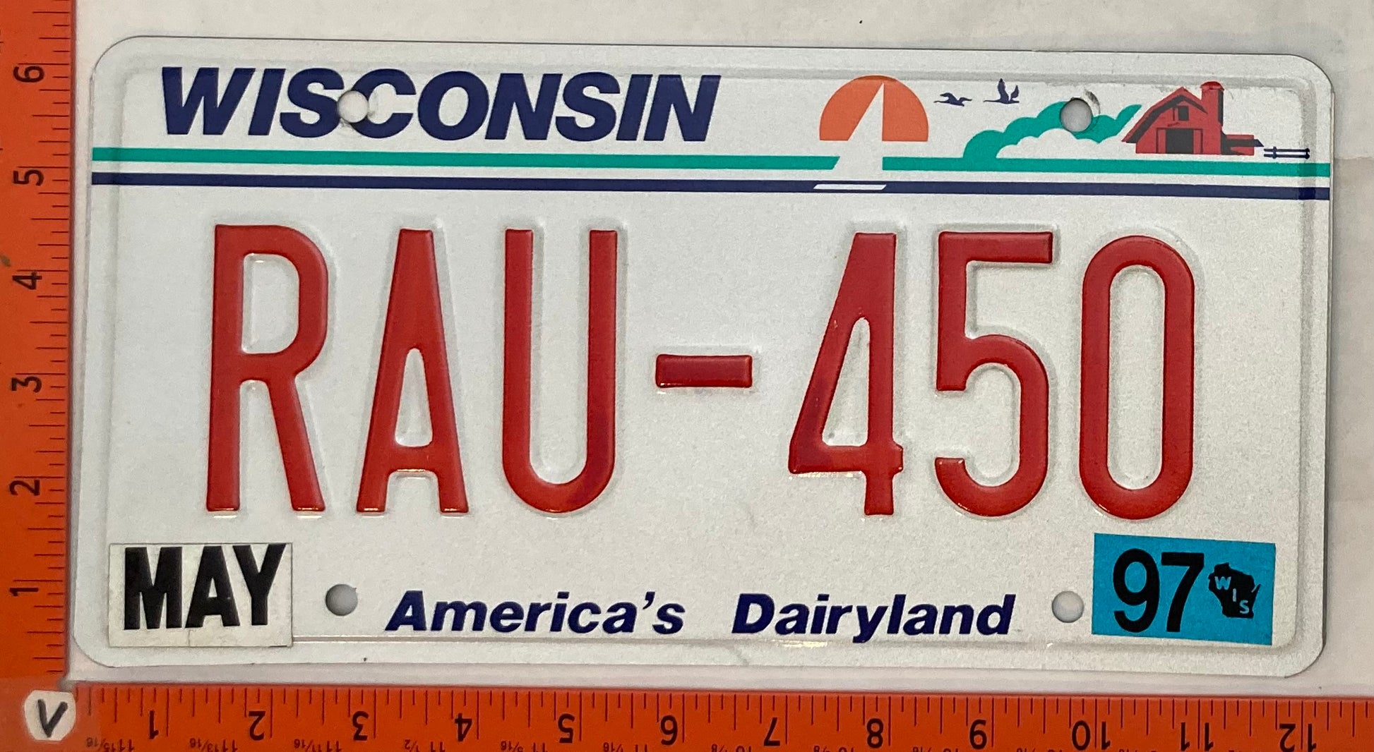 1997 Wisconsin #RAU-450 Passenger License Plate