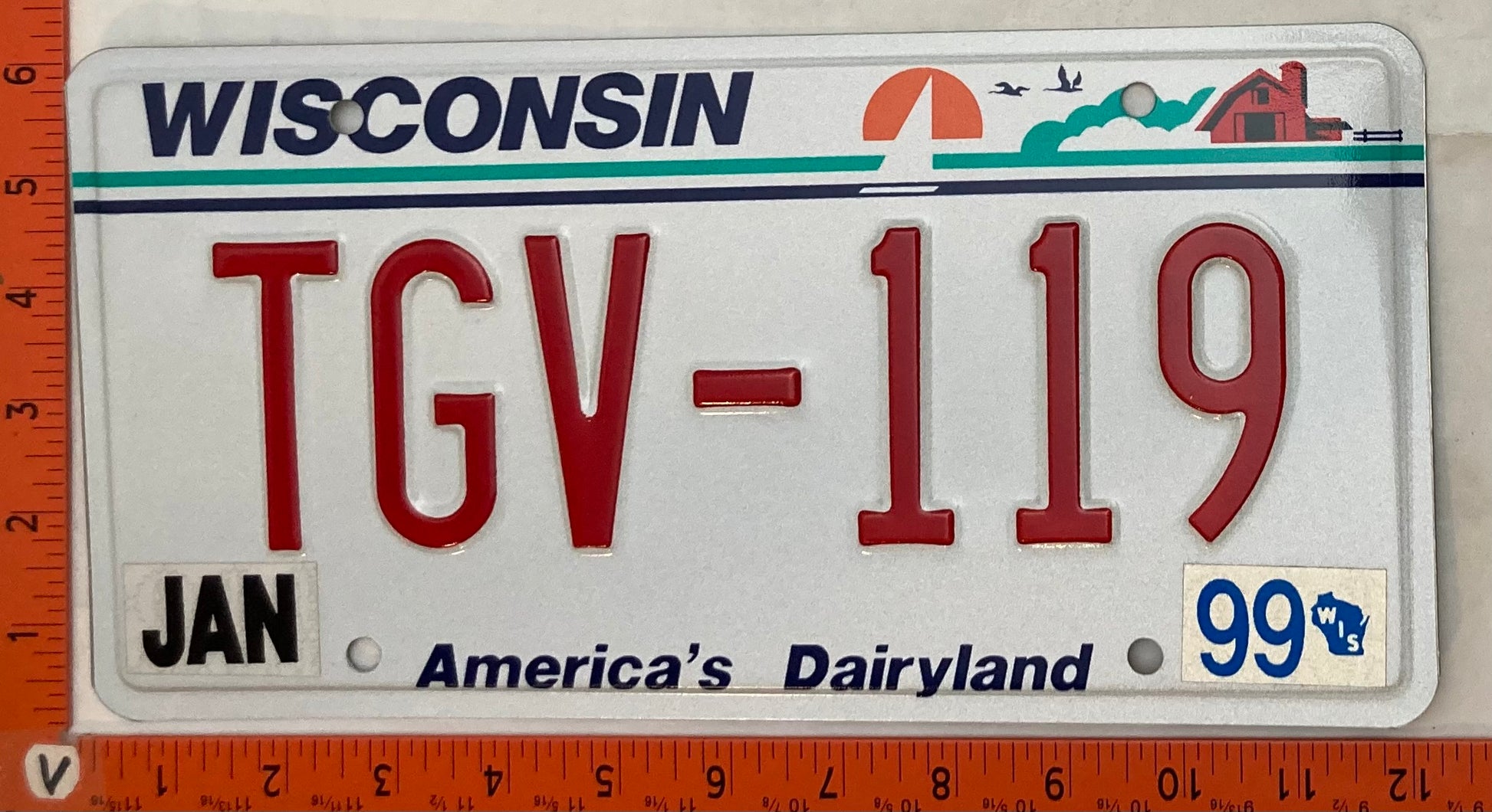 1999 Wisconsin #TGV-119 Passenger License Plate