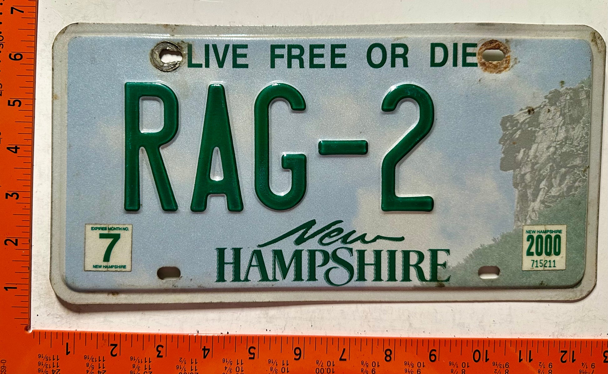 2000 New Hampshire #RAG-2 Passenger Vanity License Plate