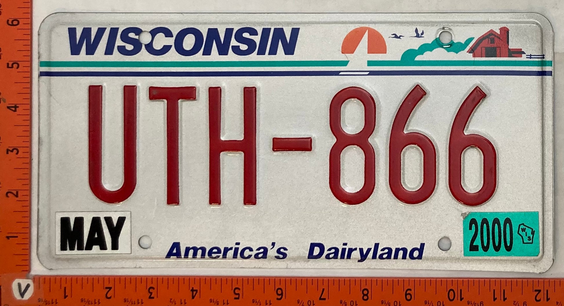 2000 Wisconsin #UTH-866 Passenger License Plate