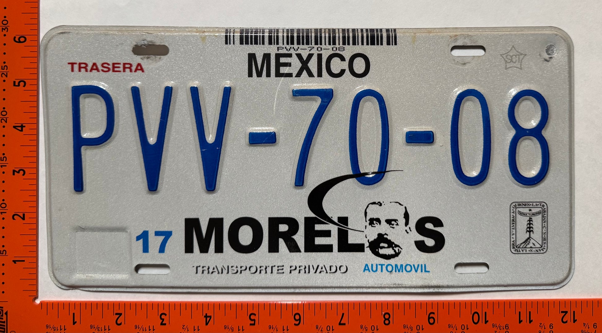 2001-2004 Morelos, Mexico #PVV-70-08 Passenger License Plate