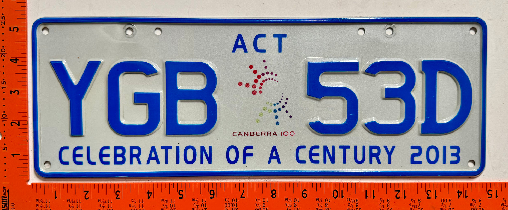 2013 base Australian Capital Territory #YGB 53D Passenger License Plate