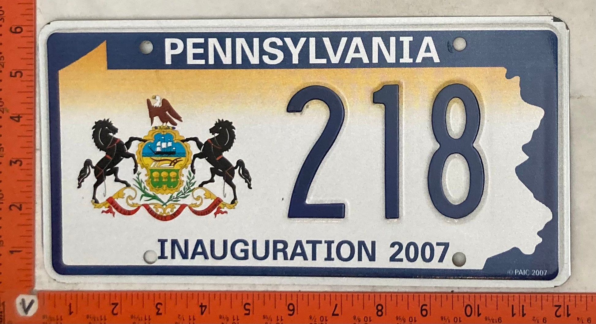 2007 Pennsylvania #218 Governors Inauguration License Plate
