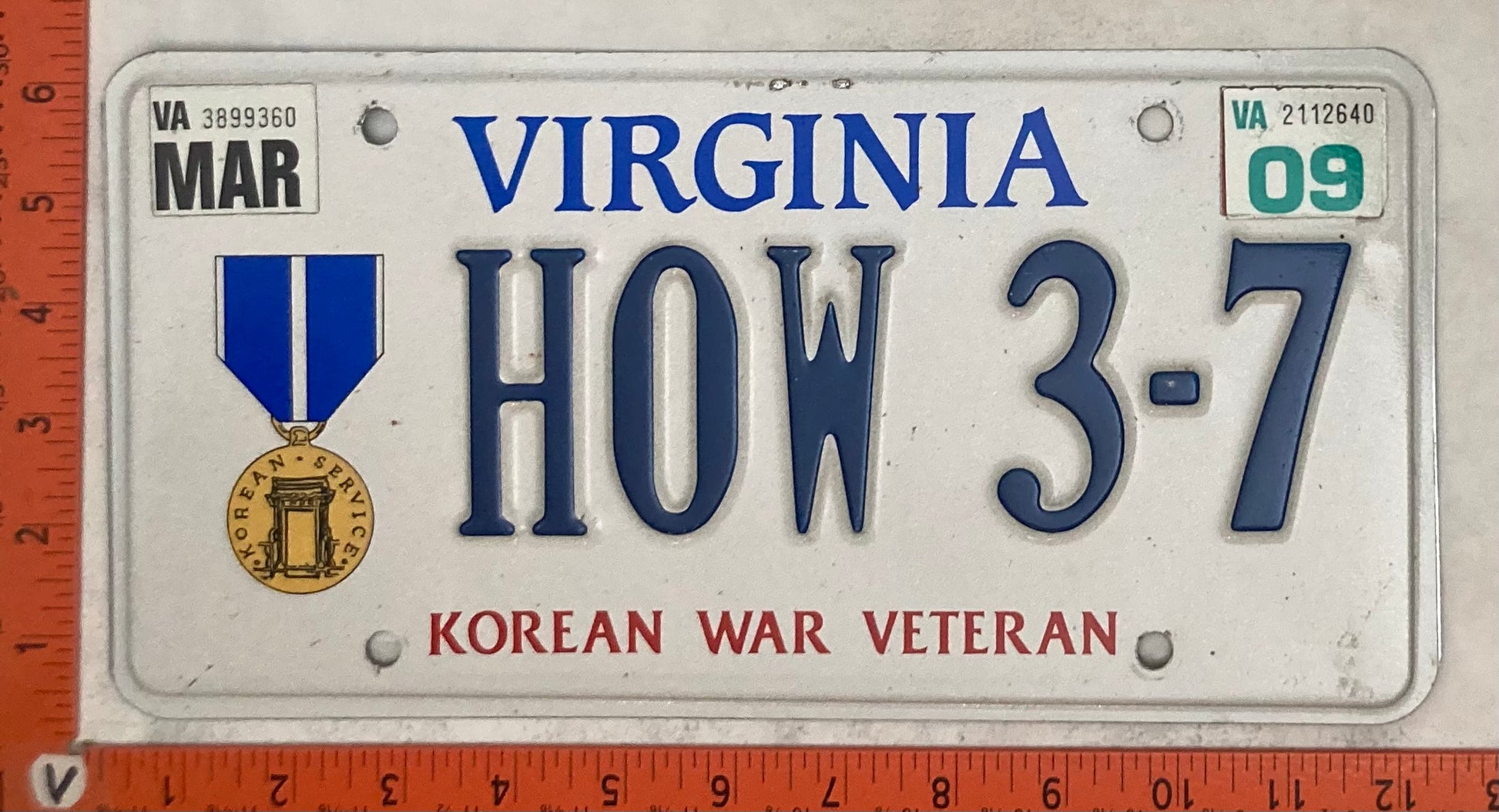 2009 Virginia #HOW 3-7 Korean War Veteran Passenger License Plate