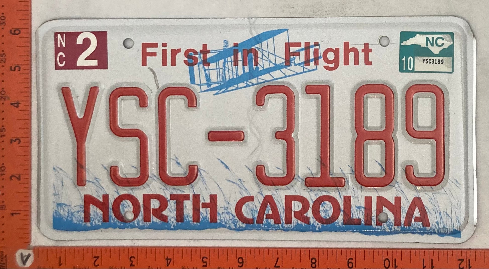 2010 North Carolina #YSC-3189 Passenger License Plate