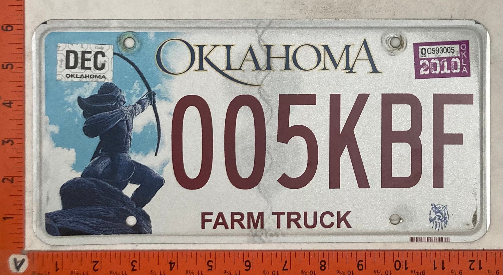2010 Oklahoma #005KBF Farm Truck License Plate