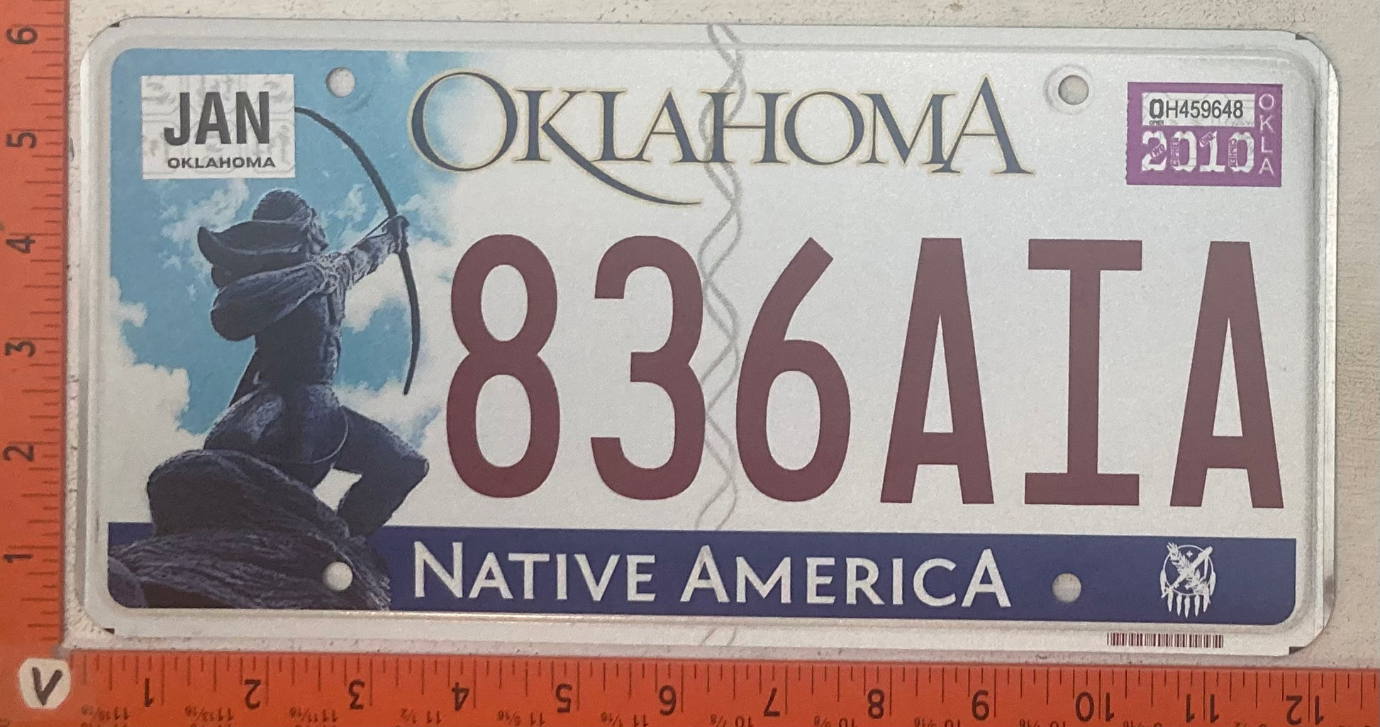 2010 Oklahoma #836AIA Passenger License Plate