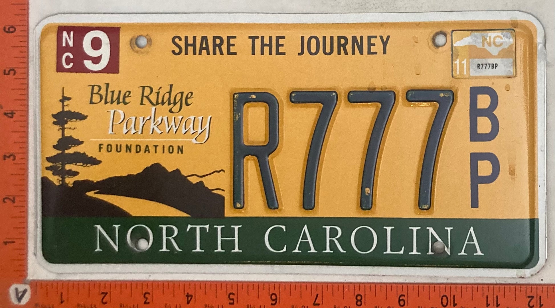2011 North Carolina #R777 B/P Passenger License Plate