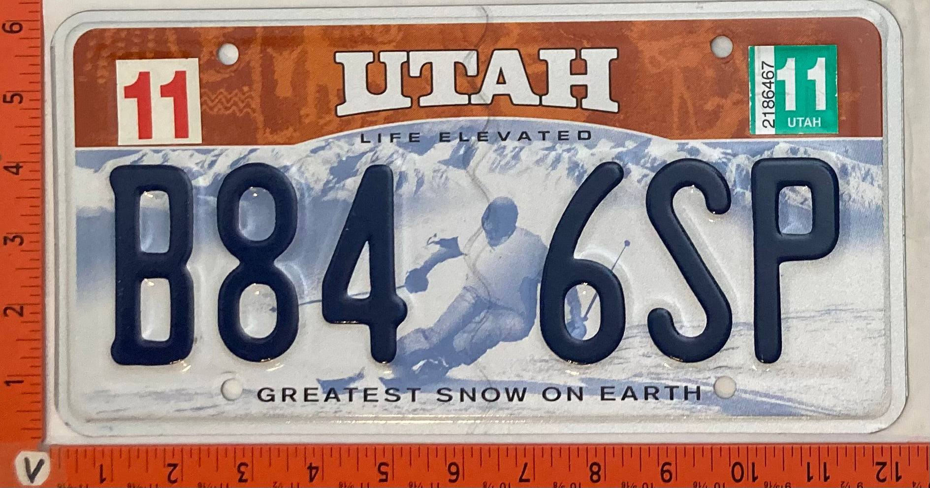 2011 Utah #B84 6SP Passenger License Plate