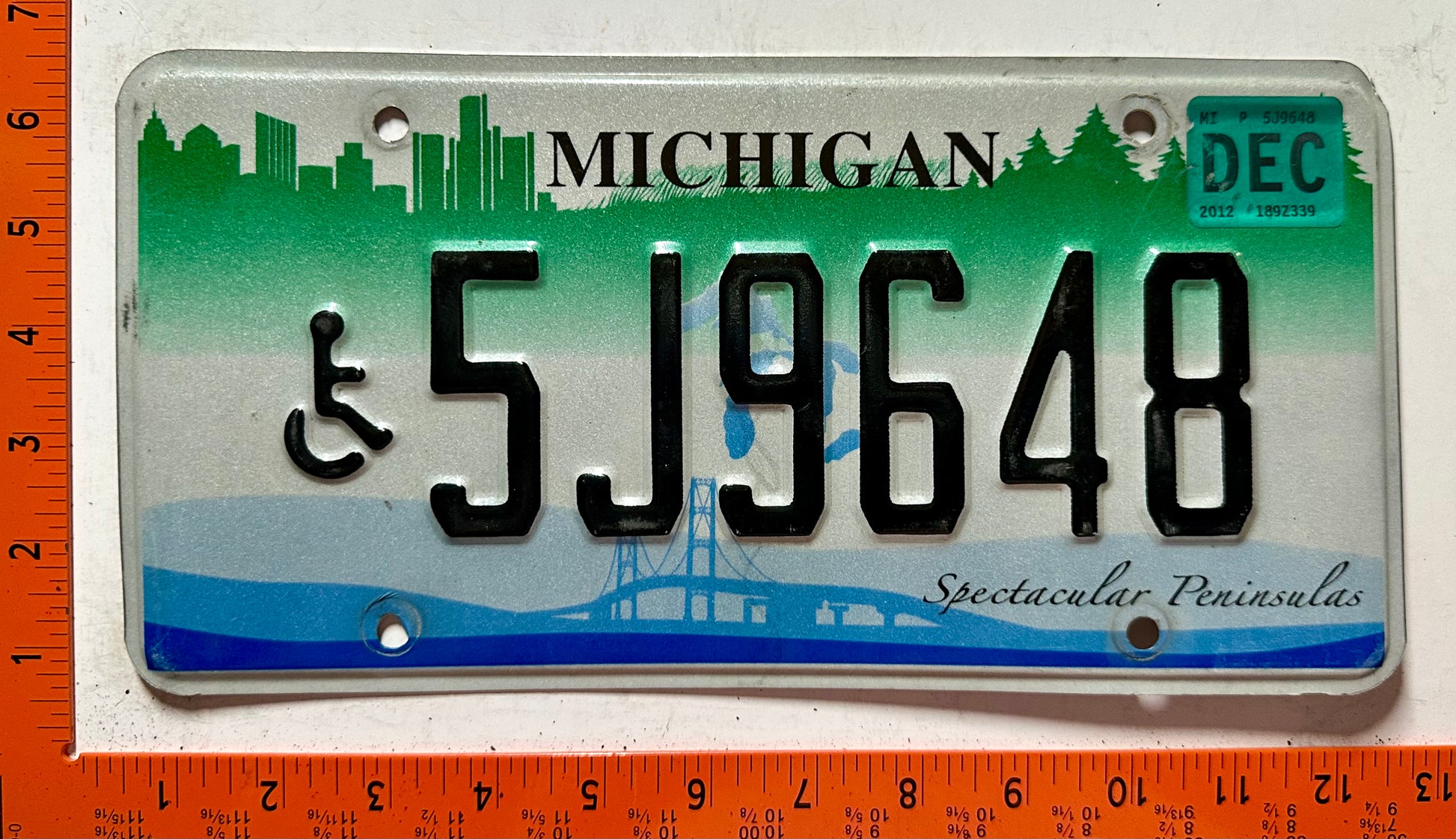 2012 Michigan #5J9648 Handicapped License Plate