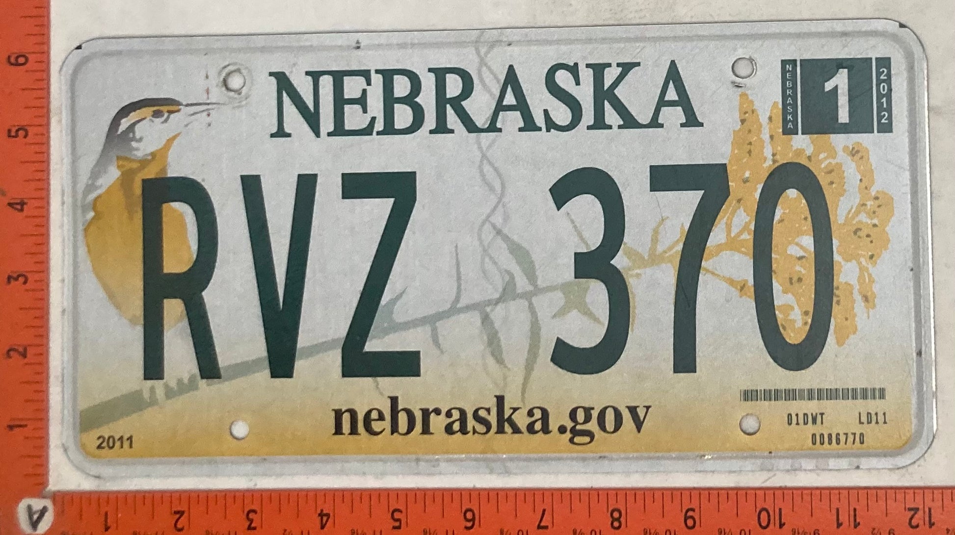 2012 Nebraska #RVZ 370 Passenger License Plate