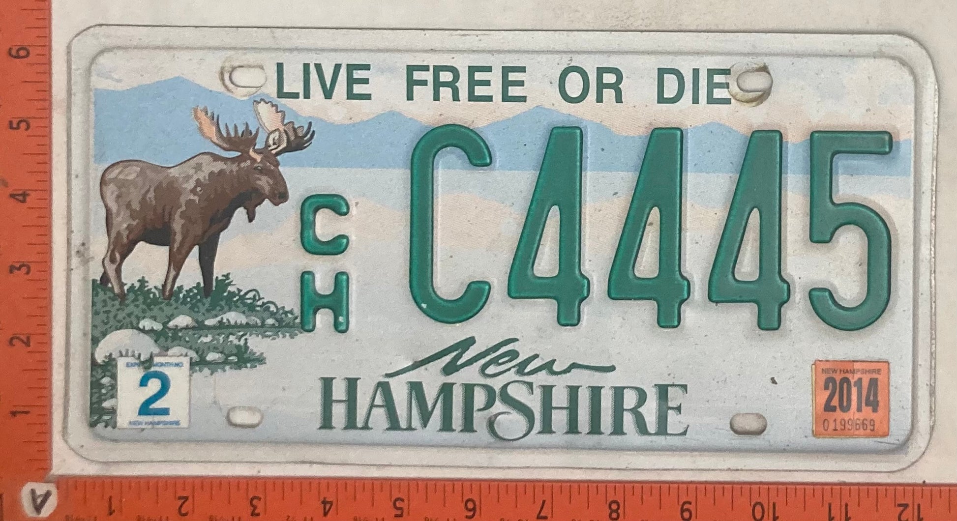 2014 New Hampshire #C/H C4445 Passenger License Plate