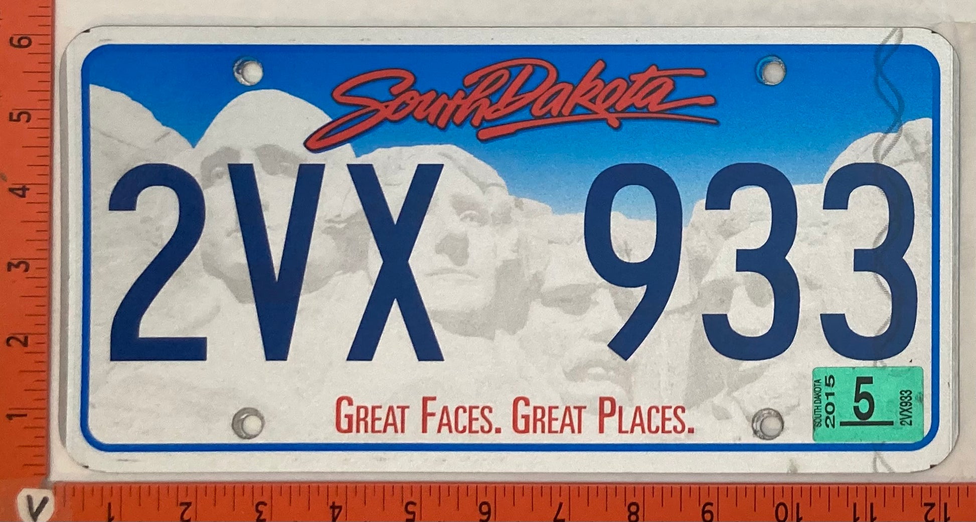 2015 South Dakota #2VX 933 Passenger License Plate