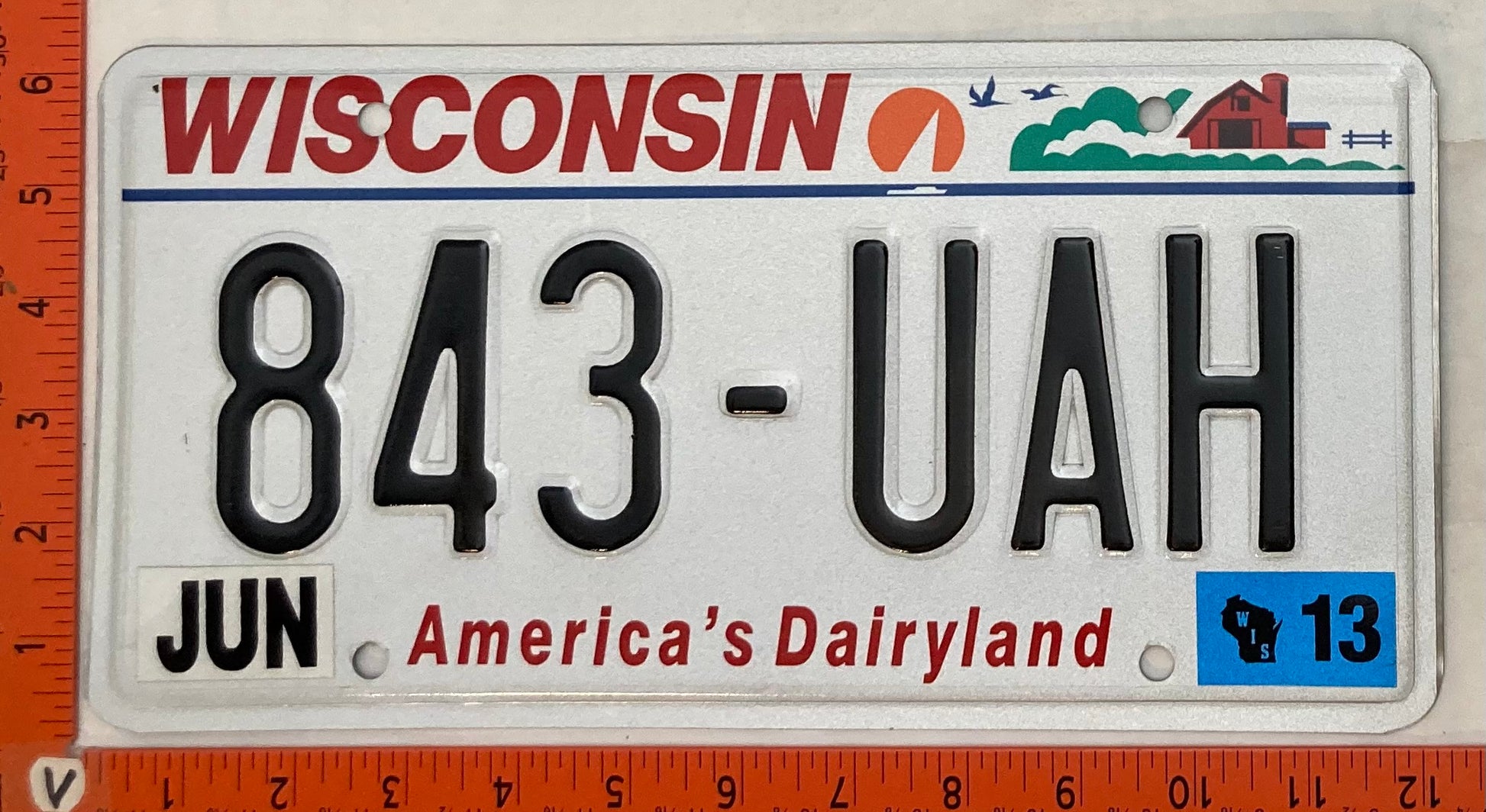 2013 Wisconsin #843-UAH Passenger License Plate