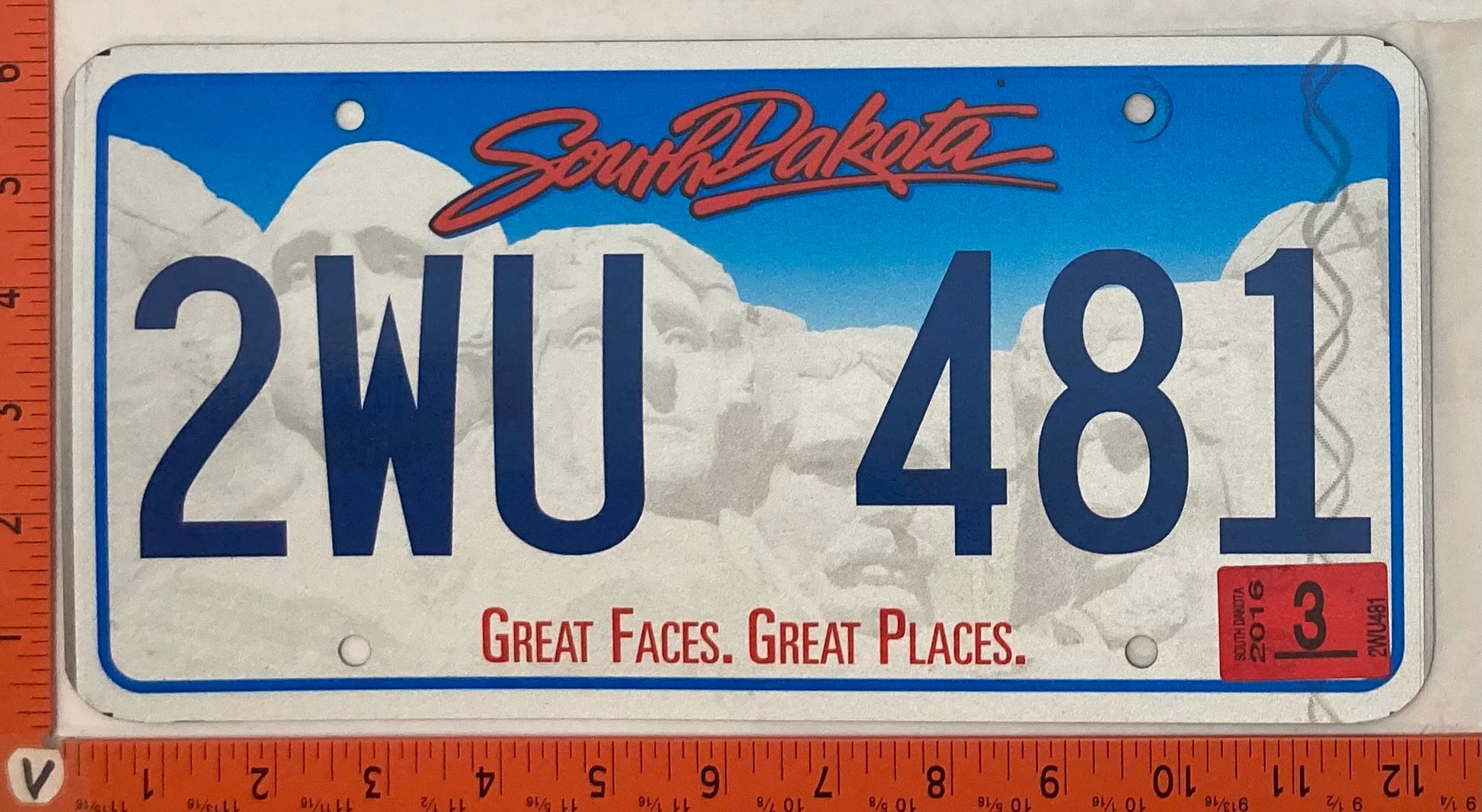 2016 South Dakota #2WU 481 Passenger License Plate